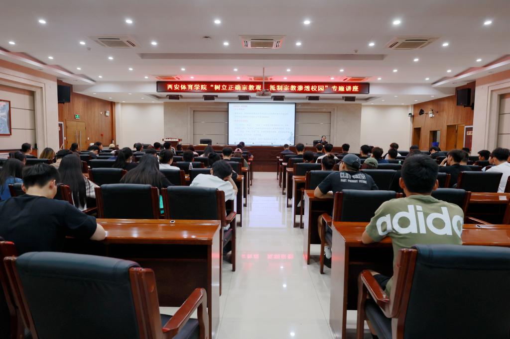 为深入贯彻落实习近平总书记关于宗教工作的重要论述,提高师生防范非法宗教活动意识,提升抵御宗教渗透校园能力,普及宗教活动政策法规,5月15日,党委统战部邀请西安市公安局碑林分局一级警长吕欣为我校师生作《树立正确宗教观抵制宗教渗透校园》专题讲座。各二级学院(部、校)辅导员,学生党、团员代表及党委统战部全体同志参加讲座。校党委校长办公室主任、党委统战部常务副部长张军主持。
