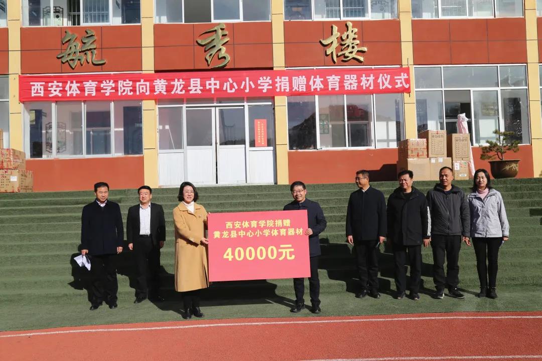 在捐赠活动中,校长刘子实代表学校向黄龙县中心小学捐赠了价值近4万元的体育器材。