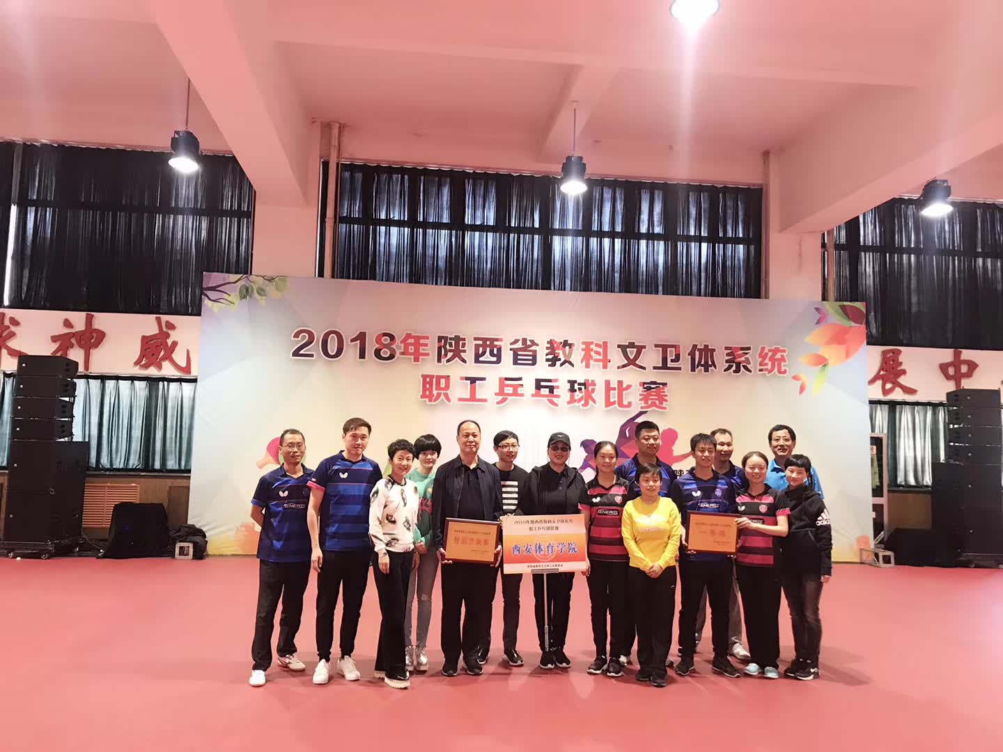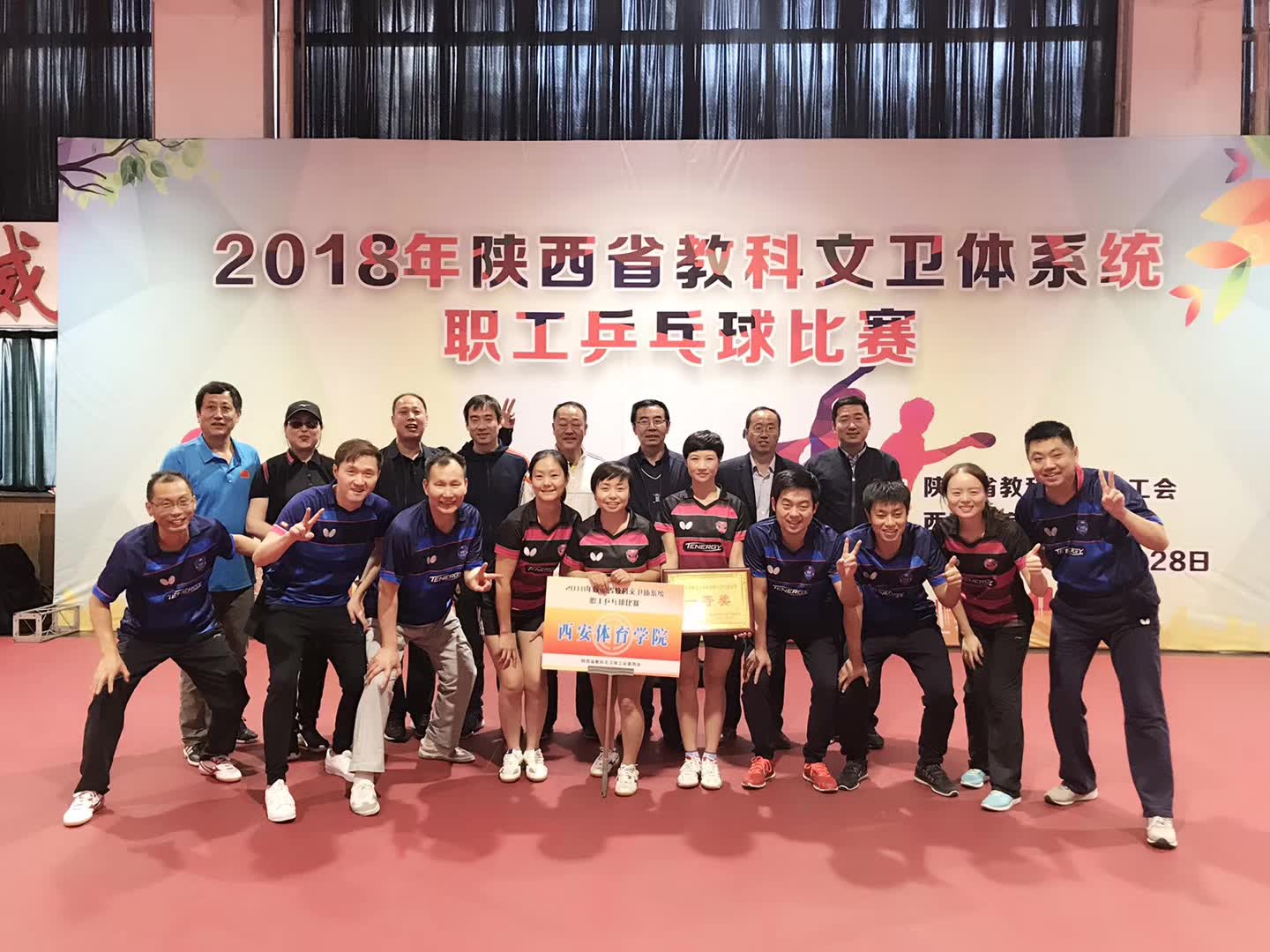 由陕西省教科文卫体工会主办、今年会官方网站承办的2018年陕西省教科文卫体系统职工乒乓球比赛于2018年10月27日--28日在我院乒乓球馆举行。全省共有62支代表队参加比赛,经过两天激烈的比赛,我院教工代表队获得冠军。