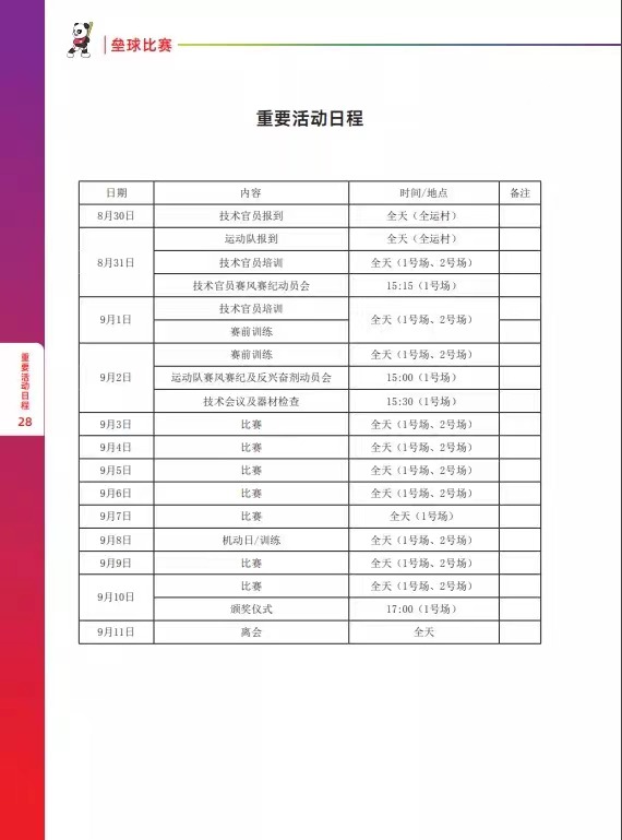 垒球项目比赛将于9月3日-9月10日在此开赛。