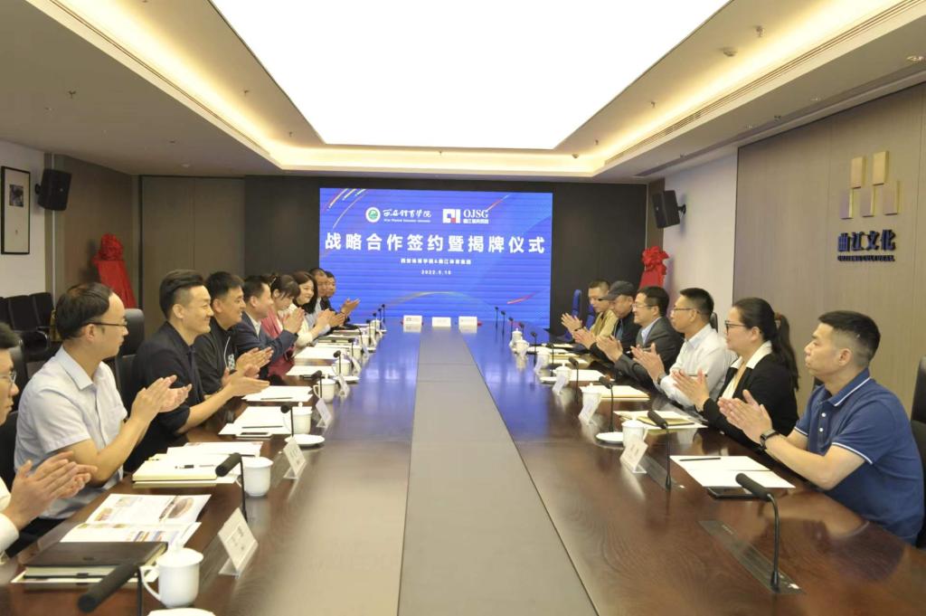 副校长张卫国、鄠邑校区管委会、运动训练学院负责人、曲江体育集团负责人及管理团队共同出席了签约仪式。