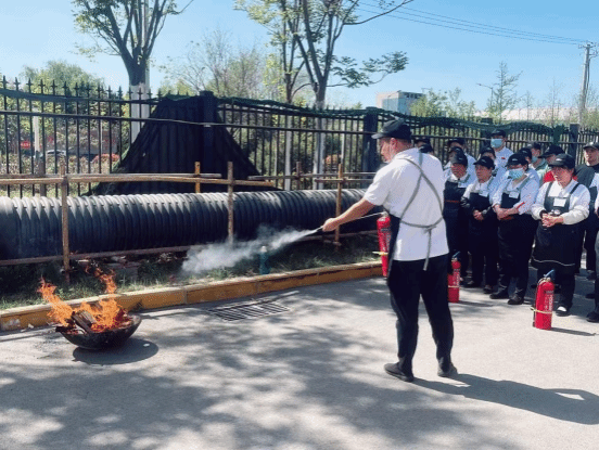 演练结束后,管委会开展专项技能培训。餐厅负责人现场演示灭火器“提、拔、握、压”操作步骤,强调“保持2米安全距离”“顺风站位避免烟尘反扑”等要点,并针对后厨常见隐患(如油火复燃、电器过热)进行专项讲解。参演员工分组练习灭火毯覆盖、灭火器喷射及电源紧急切断等操作,每项流程均由安全员逐一考核打分。餐厅工作人员表示:“过去对灭火器使用一知半解,这次反复练习后,真正掌握了动作要领。”