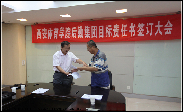 为了确保后勤集团2011年各项工作任务的顺利完成,5月20日下午后勤集团在交流中心会议室召开了《2011年双目标责任制》签订大会。总经理雷甲谋、总支书记王义勇、副总经理朱舰分别与分管中心负责人签订了目标责任书。