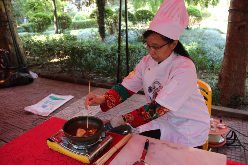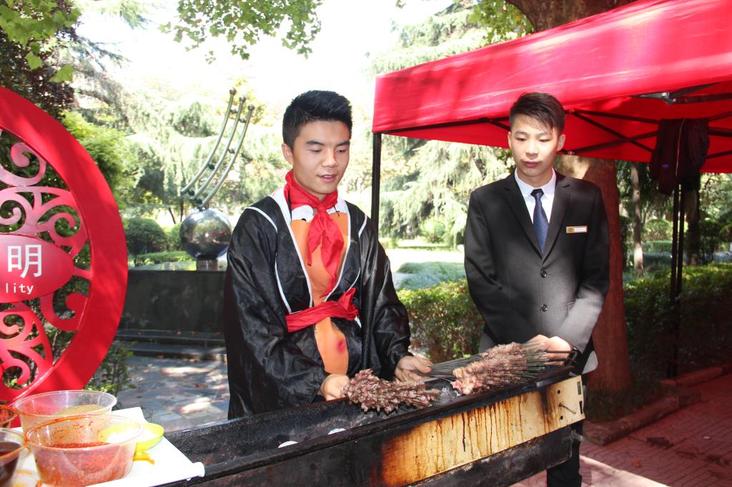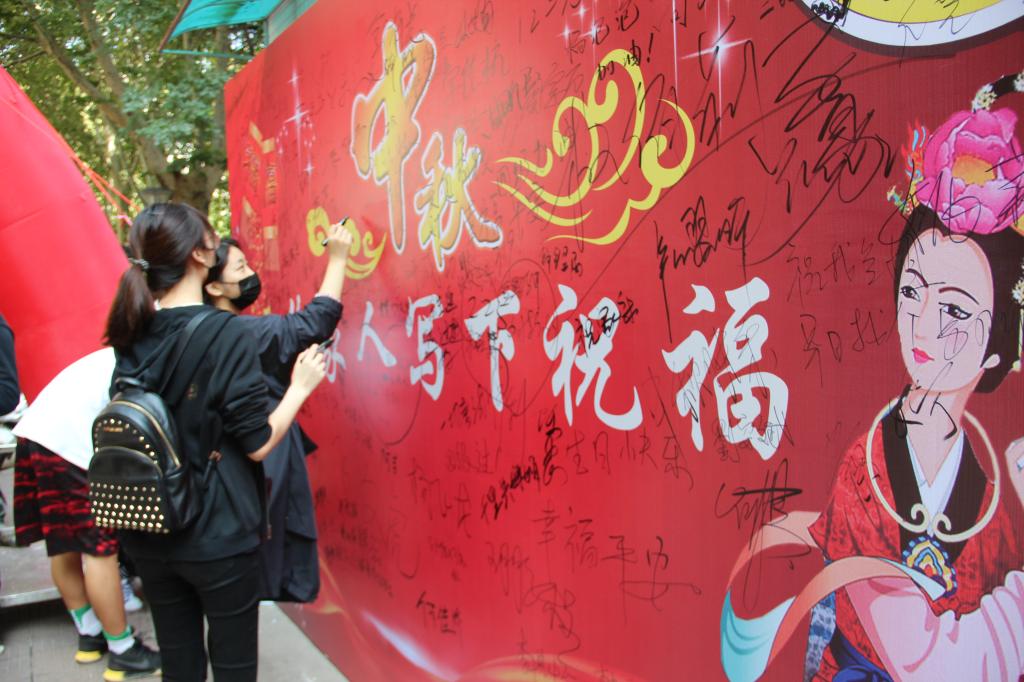 本次活动,学生餐厅开展了“留言墙”、“好运砸金蛋”、“中秋猜灯谜”、“月饼亲手做”、“厨艺大展台”、“传统手工艺小站”、“精雕细琢”等多个项目。“留言墙”上承载了同学们对未来的期许、对家人的祝福和对老师的感谢;“中秋猜灯谜”的谜板前,同学们跃跃欲试、兴趣盎然;在“月饼亲手做”的展台前餐厅大厨巧手示范冰皮月饼的制作方式,同学们看的仔细,学的认真,做的精美;在“厨艺大展台”上,各位大厨的绝活引的同学们赞不绝口;人气最火爆的要数“传统手工艺小站”,被喜欢糖画和面人的同学们围的水泄不通,一个个精美的糖画、面人深深地吸引着同学们的目光;“印度飞饼”和“精雕细琢”的表演中,大厨们为大家展示了精湛的技艺和刀工,引得同学们驻足观看。在活动的过程中,工作人员认真负责,同学们踊跃参与,气氛热闹非凡,在一片欢声笑语中,将活动推向了高潮。