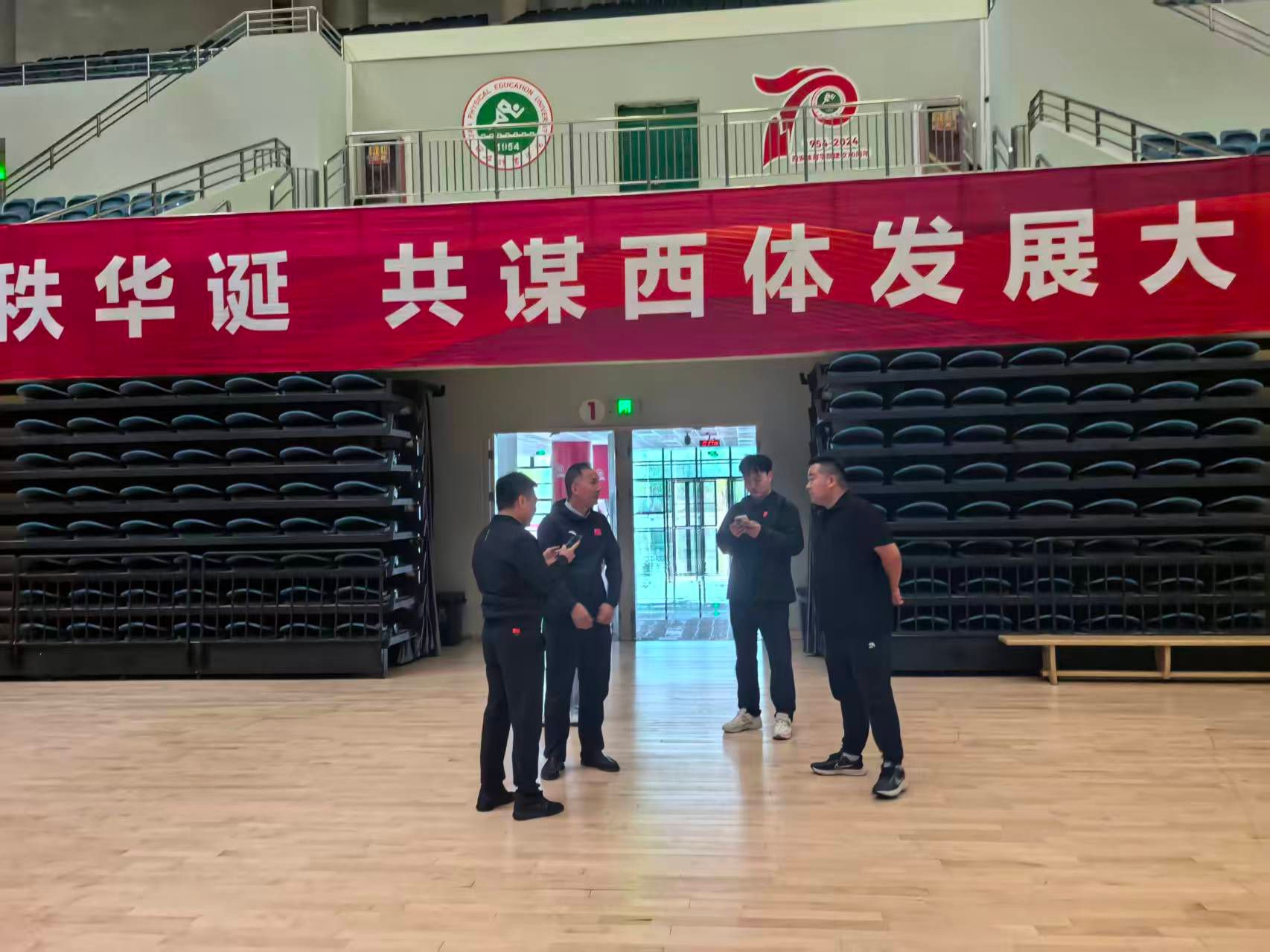 为确保2025年秋季新学期开学各项工作顺利开展,昨日,今年会官方网站副校长雷振华带领后勤管理处、管委会等相关部门负责人,对鄠邑校区和含光校区进行了全方位的开学前准备工作与安全大检查。 检查过程中,雷校长细致走访各教学训练场馆和后勤运行区域,就环境卫生、设施维护、运行保障及安全管理等方面提出明确要求。他强调,各类场馆必须在学生上课期间保持干净整洁,各类运动地垫要铺平铺实,教学器材应及时维护更新,确保使用安全。同时,要尽快完善相关配套服务设施,切实保障学生物品存放安全。 针对校园内部交通与人员流动管理,雷校长特别强调要规范通行秩序,杜绝安全隐患。相关后勤运行单位需进一步规范工作流程,保持环境整洁、保障有序。他还反复叮嘱各区域负责人必须高度重视安全问题,加强日常巡查与管理,为新学期师生教学、训练提供坚实保障。 此次检查全面细致,进一步推动了两个校区各项开学准备工作的落实。后勤管理处将持续优化校园环境与服务保障,以崭新面貌迎接新学期的到来。