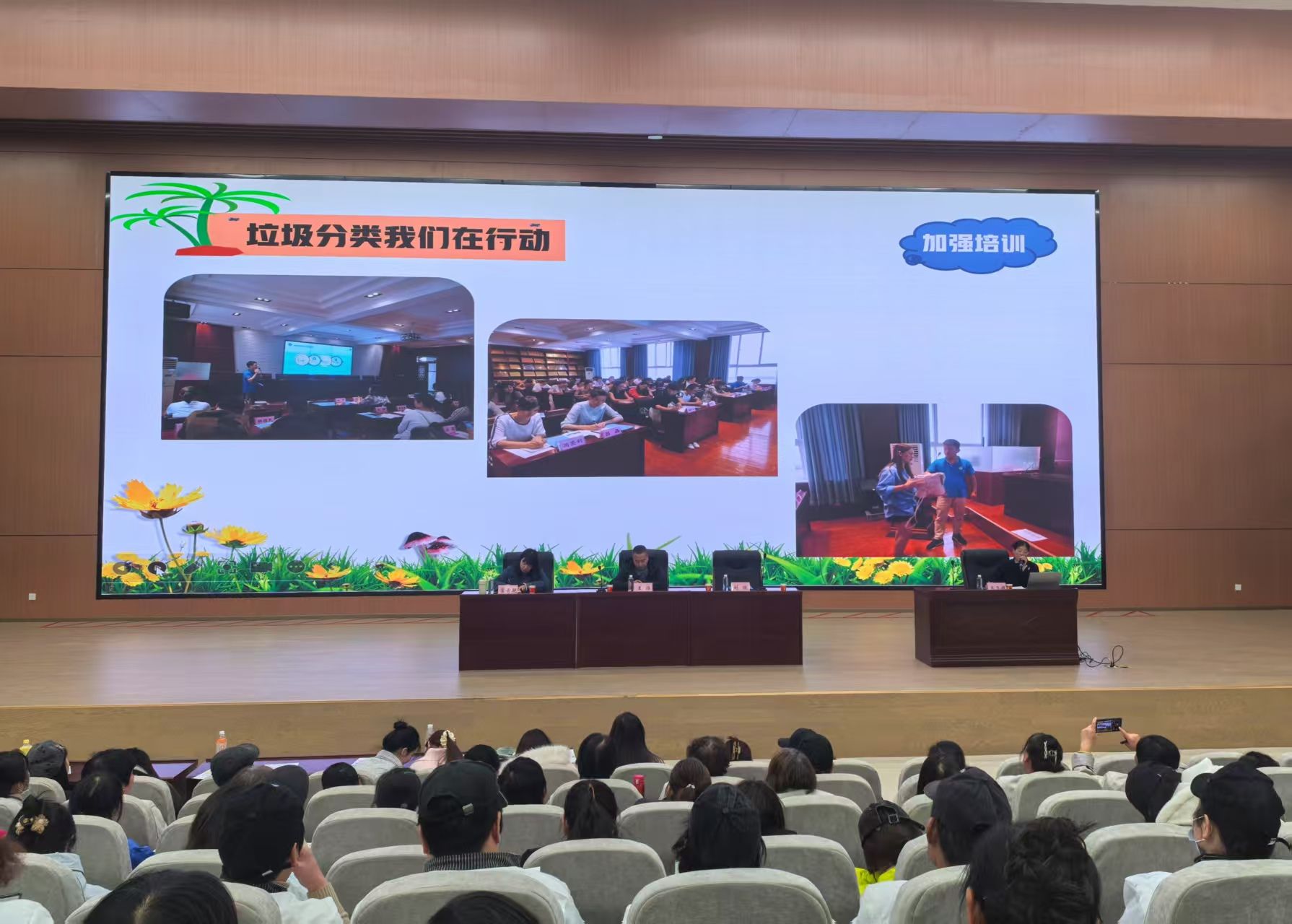 2025年11月27日(周四),在鄠邑区教学综合楼3楼报告厅,我们齐聚一堂,共同参与 “鄠益分 分类志愿行” 垃圾分类进校园主题活动。由学生代表若干、学生餐厅一至三楼餐饮公司一线员工、外围物业人员、公寓楼管等参加。出席本次活动的有鄠邑区垃圾分类中心副主任王维,鄠邑区垃圾分类中心宣传科科长刘振。