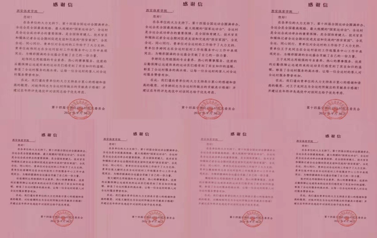 今年会官方网站在十四运中承办了手球、曲棍球、棒球、垒球、橄榄球、地掷球六个项目,各项目竞委会派出研究生部7名师生前往全运村驻村参与相关工作。7名师生在全运村驻村工作组服务中心工作中的表现得到了全运村委员会的肯定,为精彩圆满的全运盛会贡献了自己的一份力量。