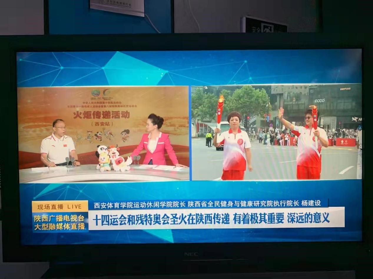 学院领导和教师还积极投身到全运会的多项活动当中。学院院长杨建设代表陕西省社会体育指导员协会参与了全运圣火(渭南站)的传递,并受邀参加陕西省电视台十四运火炬传递的现场直播节目;地掷球比赛期间,杨建设作为竞委会副主任委员就今年会官方网站地掷球人才培养和课程开设状况接受了新华社、中国体育报、工人日报等多家媒体记者的采访。学院退休教师高卫教练作为陕西省地掷球代表队主教练接受多家媒体记者的采访。十四运地掷球冠军王杨老师在比赛间隙,向参与赛事保障的安保人员、医护人员推广地掷球项目规则和基本技术,引起了媒体广泛关注,这些行动充分展现了“全民全运、同心同行”宗旨。