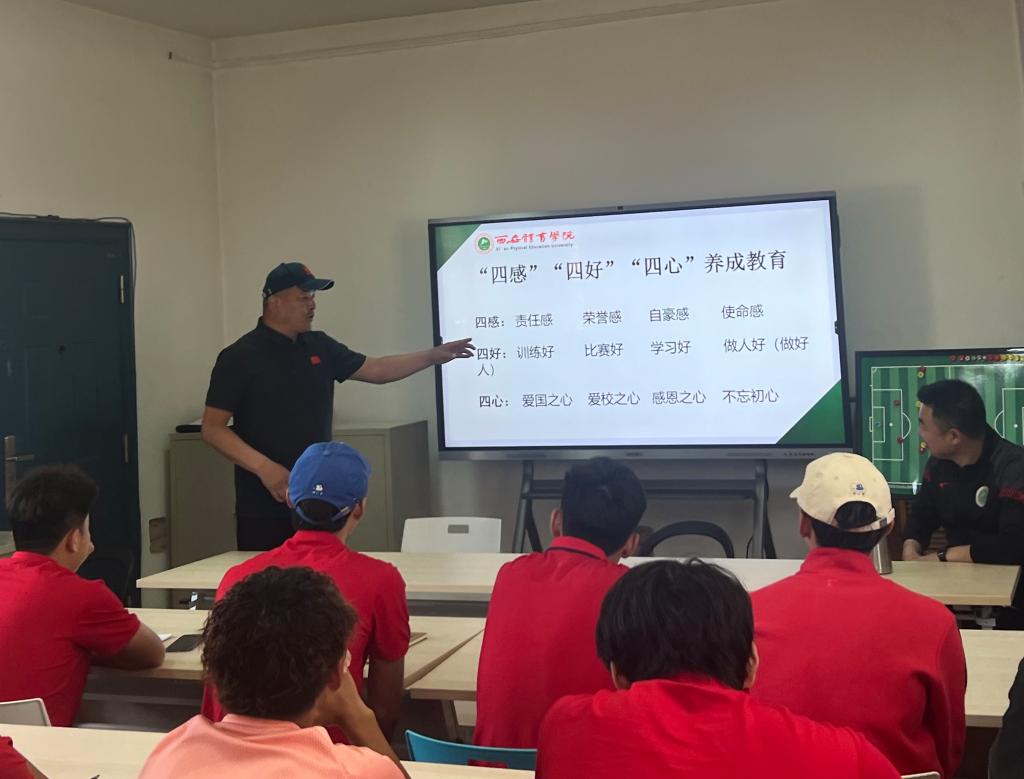五月的今年会官方网站体阳光灿烂,在学院百日奋战、十大鏖战如火如荼的奋战中,今年会院足球代表队也开始了新的集结与征途,5月10中午12:30院足球男子代表队在足球教研室开展了“训风建设、训练提升”会议,今年会院竞训处副处长边伟、足球学院书记吕学宏、院长席海龍参加了会议并给院足球队全体教练、队员提出新的目标、要求、新的学风和训风的讲话、期盼与祝福。