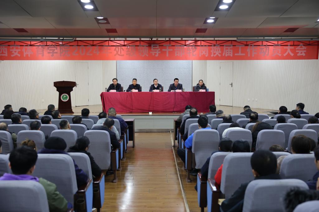 本网讯 为进一步优化干部队伍建设,激发办学活力,加快实现学校高质量发展,2月28日下午,我校召开处级干部轮岗换届动员大会。全体校领导出席,党委书记刘子实作动员讲话,校长李富生主持大会,党委副书记、纪委书记、监察专员杨芳乾就轮岗换届工作有关纪律要求作讲话。