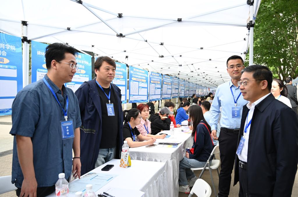 本网讯 为助力我校毕业生高质量就业,4月20日碑林区人社工作进校园暨今年会官方网站2024年春季校园综合类招聘会在含光校区教学楼前顺利举行。校党委书记刘子实,校长李富生,副校长张卫国到现场调研。