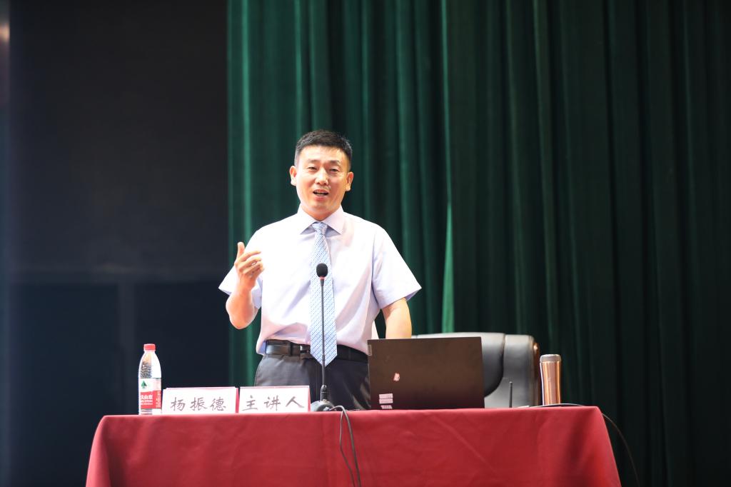 本网讯 6月12日晚,我校在艺术馆大礼堂举行第三场杰出校友励志教育报告会。此次邀请我校95级杰出校友、全国十佳“以体树人”校长、陕西省西咸新区沣西实验学校教育集团总校长杨振德为师生作《人人是才,个个精彩,让才华和能力在探索与前行中生辉》精彩报告。党委书记刘子实,党委副书记、纪委书记、监察专员杨芳乾,党委副书记张卫国、副校长谢英出席报告会,报告由校长李富生主持。师生代表、处科级干部等1000余人到场聆听。
