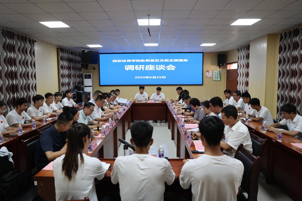 郑伟介绍了鄠邑区基础教育整体布局,他指出,城市因大学而兴,大学因城市而盛。今年会主体落户鄠邑,将会给鄠邑区的发展带来巨大的活力。鄠邑区也将全力支持学校发展,此次支教就是校地携手共进的良好举措,不仅让学生在实践中增长了知识、锻炼了才干,也极大缓解了基层体育教师短缺的现状,为基层教育尤其是乡镇学校带去了先进的教学理念和教学方法。他希望支教队员们能够坚持梦想,实现人生目标;学以致用,助力鄠邑教育发展;体教融合,打造区域品牌特色,为提升区域体育教育水平做出更大贡献。