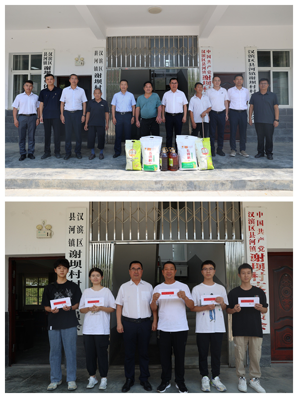本网讯    为加强乡村振兴产业帮扶,8月15日,校长李富生、党委副书记马海涛和党委校长办公室、运动与健康科学学院、经管学院负责人等到我校帮扶点安康市县河镇谢坝村看望困难群众、慰问高考考学学子,并与驻村扶贫干部召开产业发展座谈会。