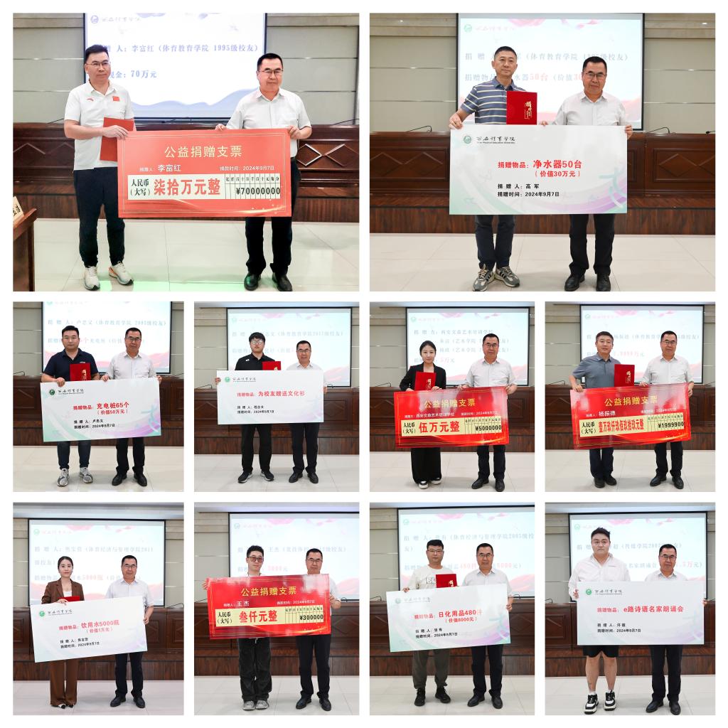 校友是学校的宝贵资源,学校是校友的坚强后盾。此次校友座谈会暨校友捐赠仪式上,我校共收到在场校友捐助的价值170余万元的现金及物资。在建校70周年来临之际,欢迎各方校友回母校交流,希望广大校友多渠道多方位关心支持母校建设发展,汇聚资源、贡献力量,共建美好今年会!