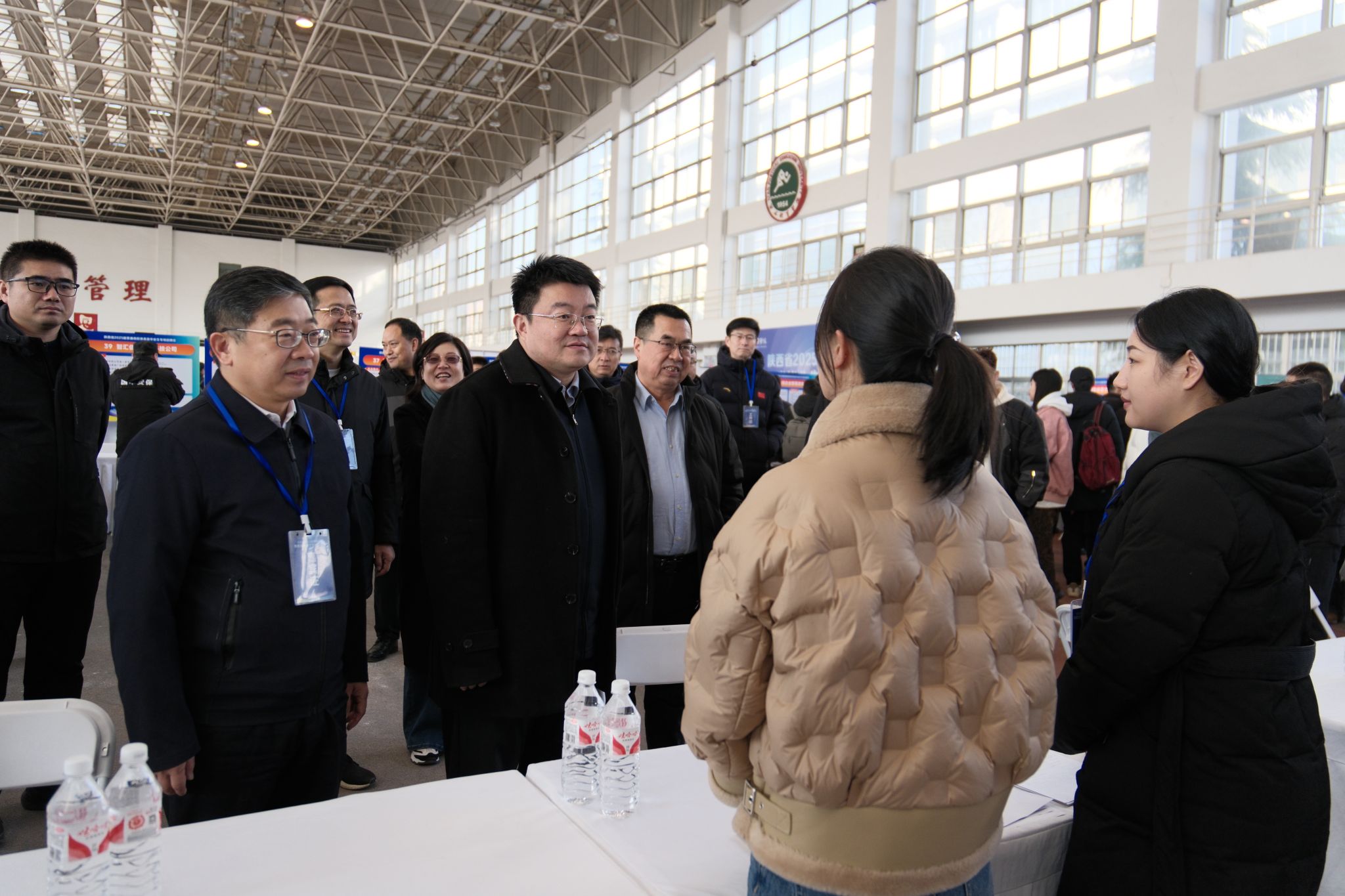 本网讯 为进一步推动陕西省体育类毕业生高质量就业,由省教育厅、共青团陕西省委员会指导,我校主办的“陕西省2025届普通高校体育类毕业生专场招聘会”在含光校区室内田径馆举行,陕西省教育厅副厅长吴振磊 、校党委书记刘子实、校长李富生、党委副书记张卫国、陕西省教育厅、陕西省团省委相关部门负责人到场详细了解参会单位用人需求情况,指导和鼓励毕业生就业。