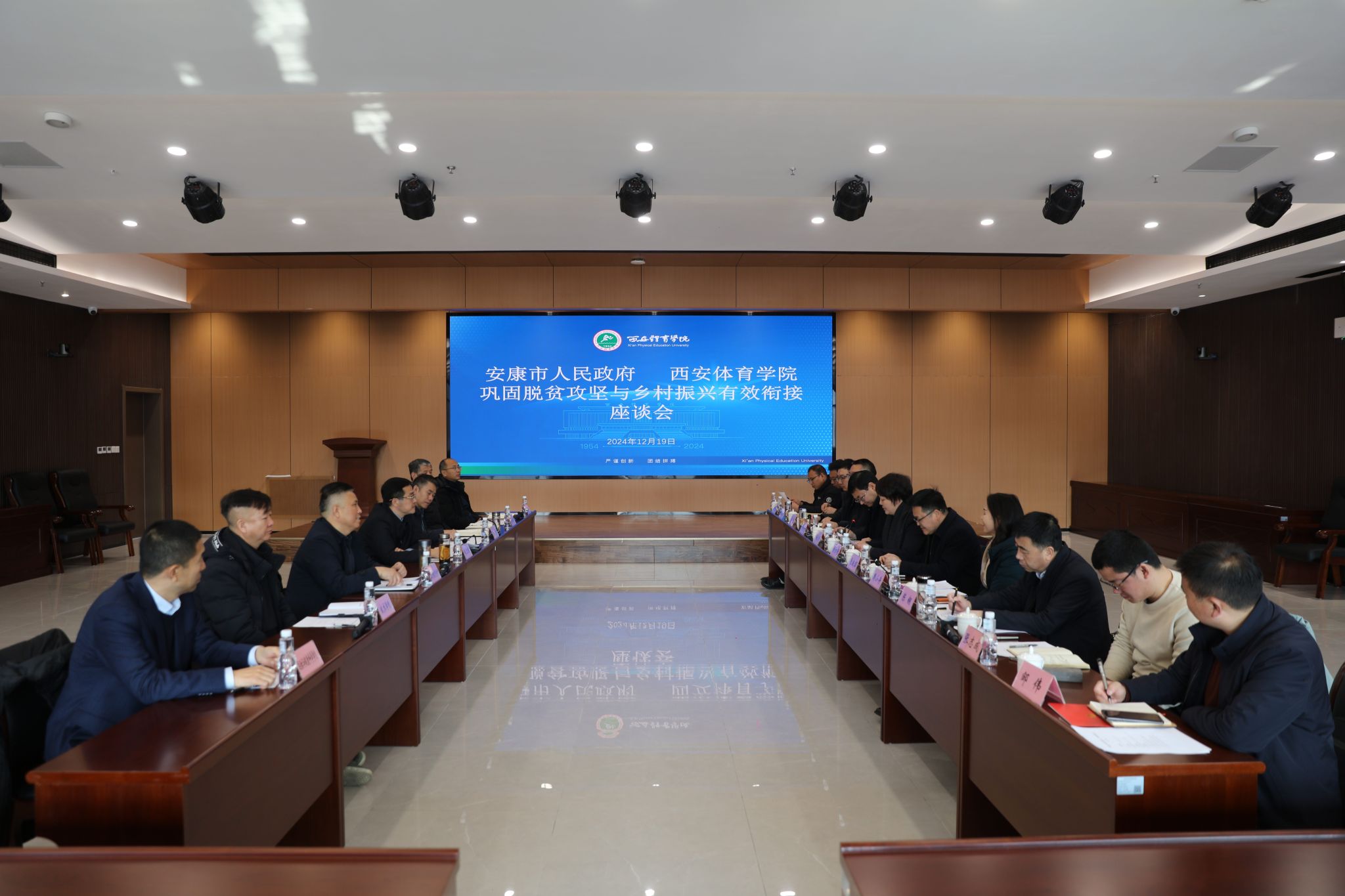 张卫国代表学校党政对杨首艳一行的到来表示热烈欢迎,并介绍了学校的办学历史和发展情况。指出,近年来,学校始终贯彻落实中央和省委关于乡村振兴工作的重大部署,积极为汉滨区乡村振兴出谋划策,围绕智力、教育、健康、科技、文化、人才、民生、志愿帮扶,突出体育教育帮扶,为汉滨区乡村振兴出谋划策,贡献了今年会智慧。2021年以来学校累计投入帮扶资金500余万元,先后选派9名优秀同志作为驻村干部开展乡村振兴工作,连续五年被评为省级帮扶先进单位。下一步,学校将深入学习贯彻落实习近平总书记来陕考察重要讲话重要指示精神,进一步深化学校与安康市人民政府签署的战略合作框架协议,按照12月2日助力安康高质量发展大会上李富生校长提出的10项工作举措,在全民健身、乡村振兴、竞赛组织、中小学体育教学、体育师资队伍建设、体育产业开发等方面深度交流合作,加强“产学研用”深度结合,搭建成果转化孵化平台,为安康市体育教育事业、体育产业发展提供智力和人才支撑,助推安康市高质量发展。