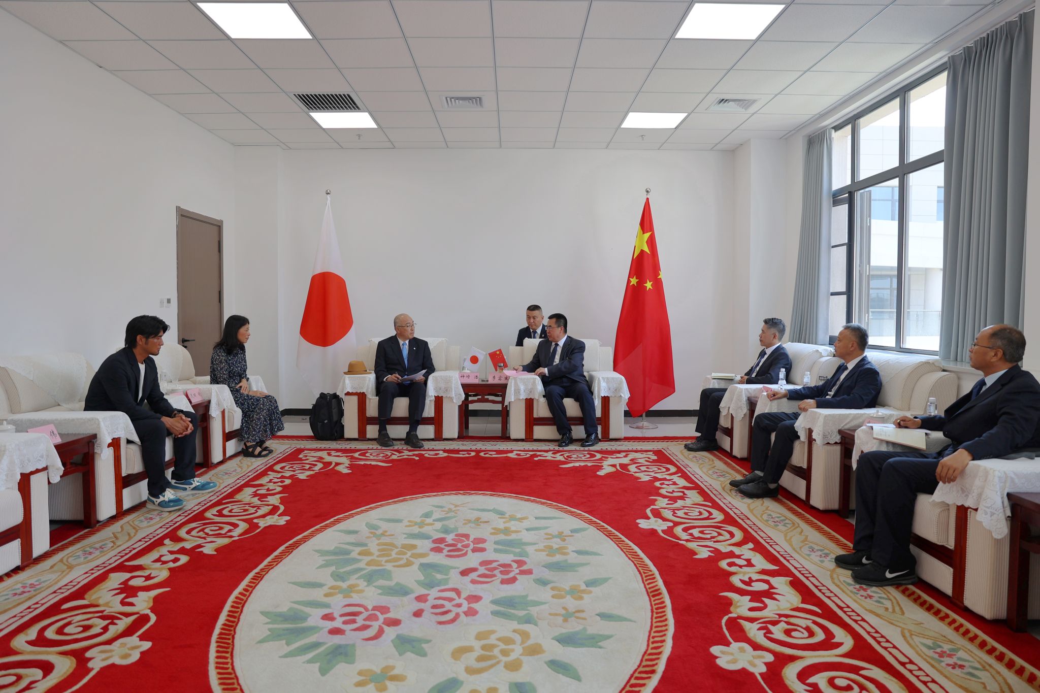 本网讯 7月26日至31日,日本大阪体育大学校长神崎浩、足球队主教练松尾元太一行18人到访我校,开展足球交流活动。我校党委书记刘子实、校长李富生会见来访嘉宾。