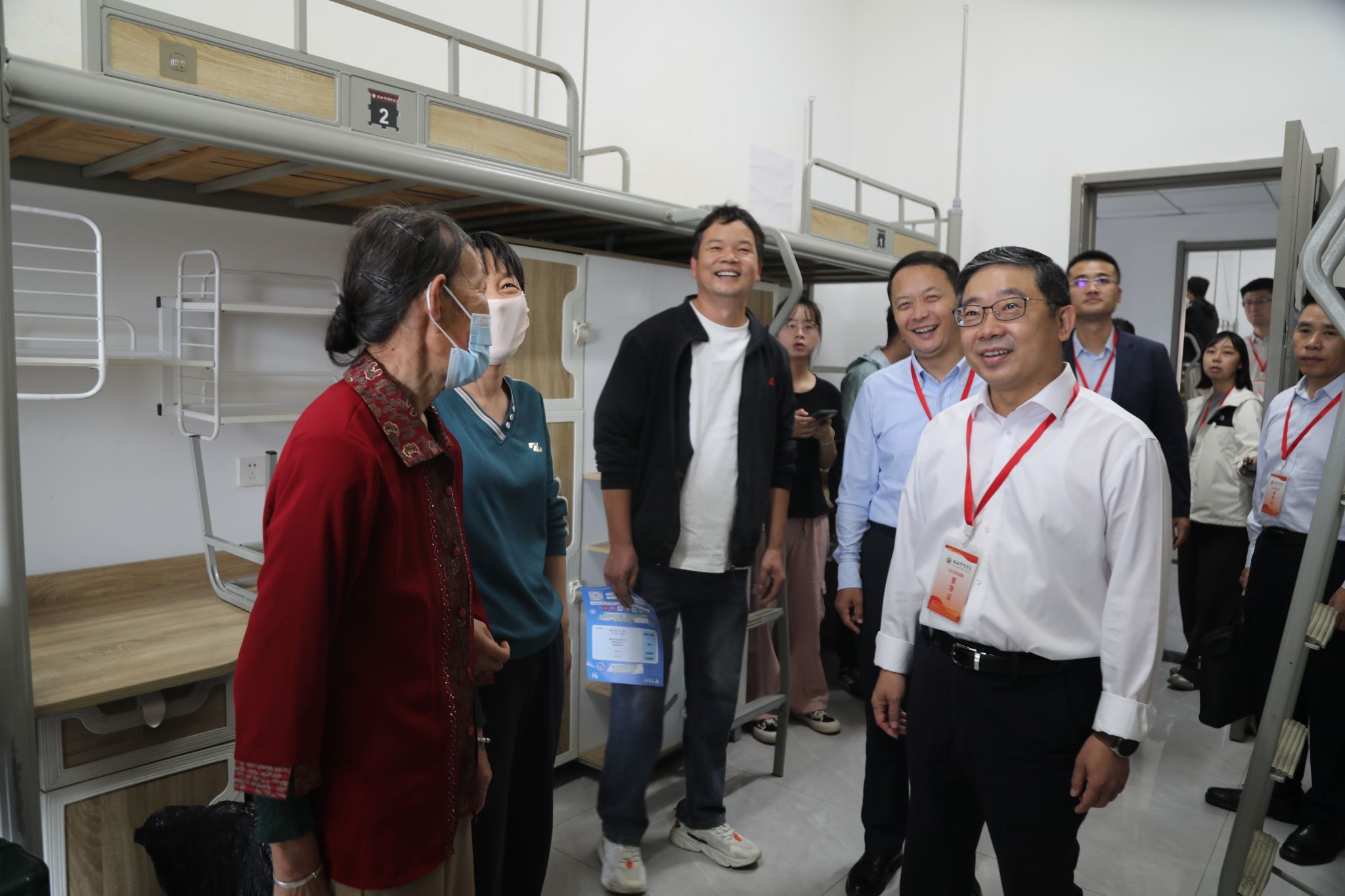 校领导深入各二级学院迎新接待点、学生宿舍等区域,分别对宿舍环境、校园秩序、后勤保障及开学氛围营造情况等方面进行检查指导,同时与新生及家长亲切交流,并对参与迎新工作的师生和志愿者表示慰问。