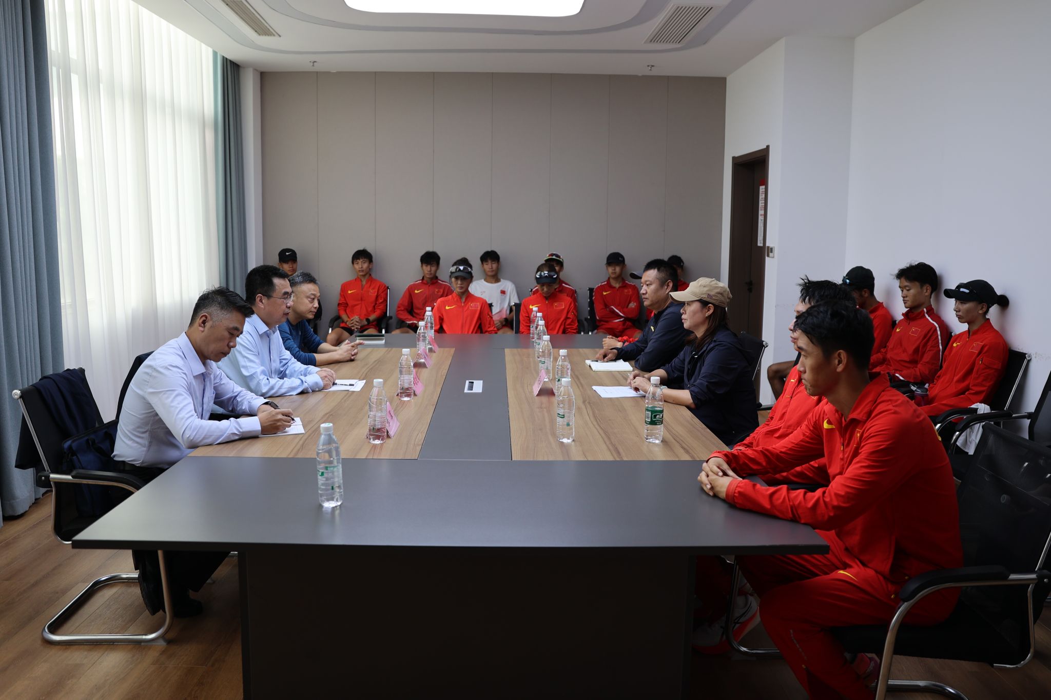 在训练场边,李富生一行现场观摩了队员们的专项训练,主教练蒋秋艳详细汇报了阶段性训练成果。随后,复合型训练团队成员及运动员代表李炎东、殷腊梅等先后发言,结合自身岗位汇报备战进展与参赛目标。