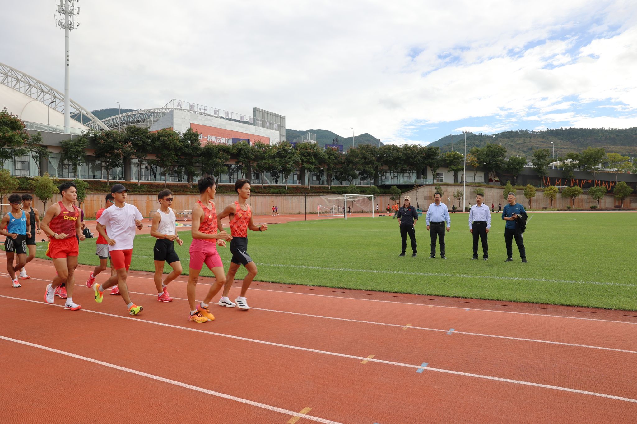 李富生表示,四年一届的全运会既是体育的盛会,也是展示我校改革发展成果和竞技体育发展实力的重要舞台。看到队员们精神昂扬、训练有素、步频精准、姿态规范,倍感振奋,十分欣慰。在全运会备战进入冲刺阶段的关键时刻,希望运动员、教练员以“守正创新超越,自信自立自强”为指引,在传承中突破,在挑战中奋进。一要牢牢守住“竞走之正”。中国竞走学校历经数年积淀形成的技术风格与优秀文化,与教练团队以队为家的敬业精神、运动员敢打敢拼的进取精神,共同构筑了“竞走铁军”的文化根基。希望全体成员赓续优良传统,将队魂队风转化为赛场制胜的强大精神动力。二要立足创造“训练之新”。面对全运会增设混合接力等新项目,必须突破传统思维定式,建立“一人一策”的个性化训练体系。要充分发挥复合型团队作用,通过生物力学分析优化技术动作,运用可穿戴设备实时监测生理指标,结合大数据模型制定营养与恢复方案,实现训练手段的现代化升级。三要力争超越“历史最优”。全运会冠军只是职业生涯的阶段性坐标,全体成员应以“建设世界一流竞走强队”为愿景,将个人成长融入项目发展大局,通过系统规划周期训练,在技术稳定性、关键比赛能力、逆境应对水平等方面实现全面突破,力争在本届全运会创造奖牌数与含金量的双重突破。四要自信方能自立自强。自信源于日复一日的刻苦训练,源于对技术细节的精益求精,更源于团队互信形成的强大合力。全体队员、教练员要具备“想赢不怕输”的竞赛哲学,将压力转化为动力,在赛场上展现“使命在肩、奋斗有我”的精神风貌。
