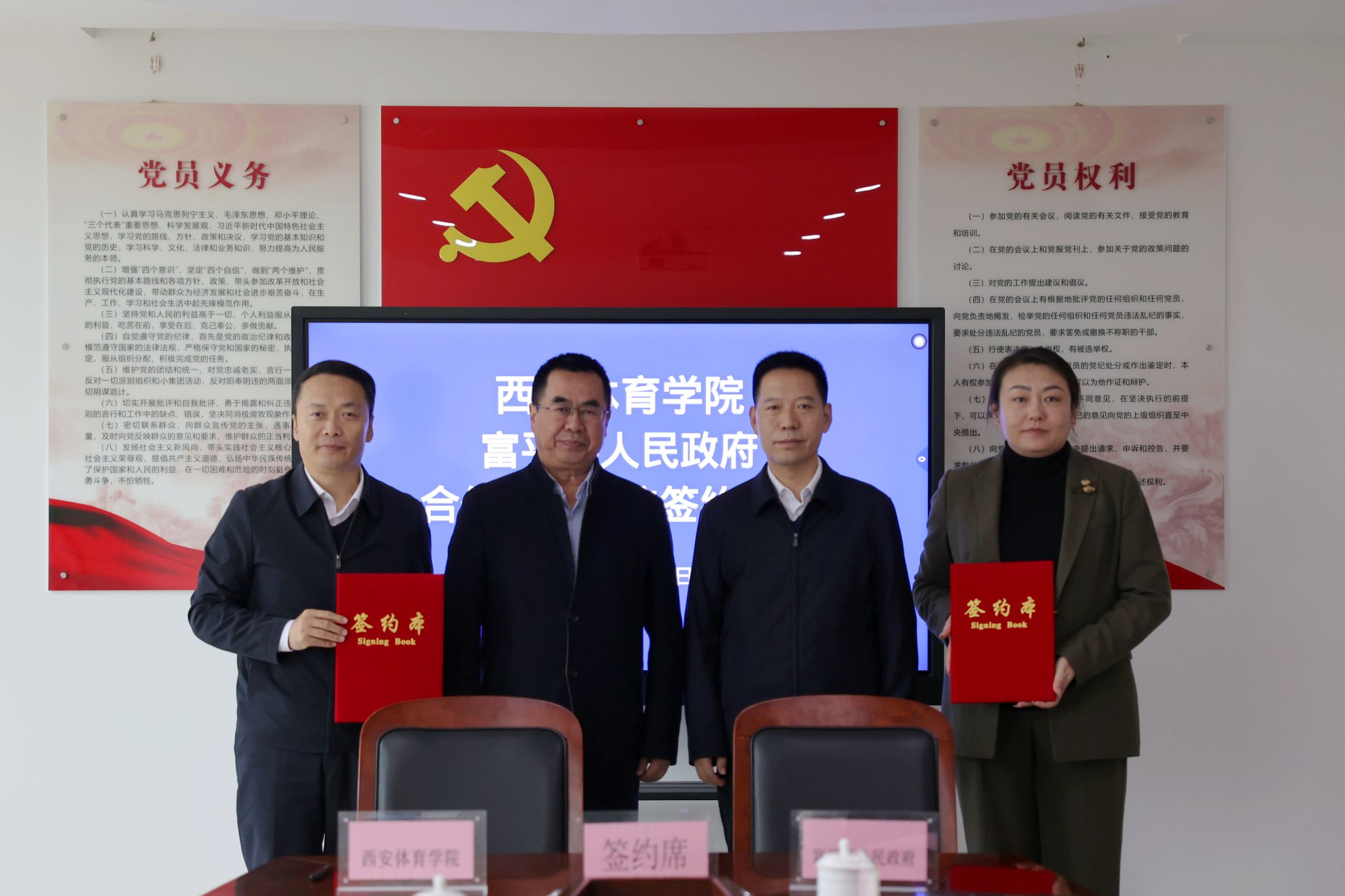 该《协议》以“资源共享、优势互补、服务发展、注重实效”为原则,聚焦人才、教育、产业、健康、文化领域,旨在携手推进高层次体育人才队伍建设,促进青少年体育合作与体教融合工作,加快体育产业与科研转化;同时将在体卫融合,推动运动康复技术下沉,培养“体育+医疗”人才方面进行创新探索,协助富平县建立“十五分钟康养圈”,助力富平县创建全民健身模范县。我校依托富平红色资源开展“党建+体育”活动,共建“体育精神宣讲团”,开拓实习实训基地。