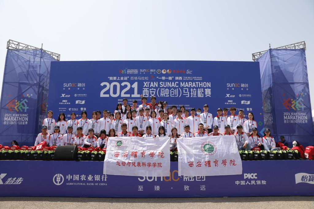 本网讯 4月17日上午,“我要上全运”百场马拉松暨“一带一路”陕西2021西安马拉松赛开跑。我校运动与健康科学学院的60名学生志愿者作为上千名西安马拉松志愿者的一份子,一起为西马参赛者提供了全面细致的保障服务。