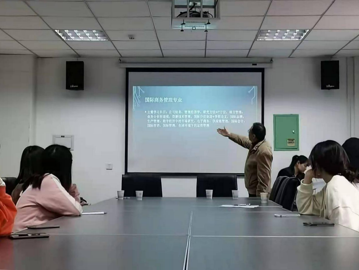 本网讯 4月21日下午,体育经济与管理学院召开出国留学交流项目宣讲会,邀请陕西省教育厅国际交流中心姚运章、谢丹老师为学院2017级学生介绍赴“俄罗斯圣彼得堡国立经济大学、德国德累斯顿工业大学攻读硕士”项目。体育经济与管理学院党总支书记马迅,辅导员霍达、胡雪妍及17级学生参加本次会议。宣讲会由霍达主持。