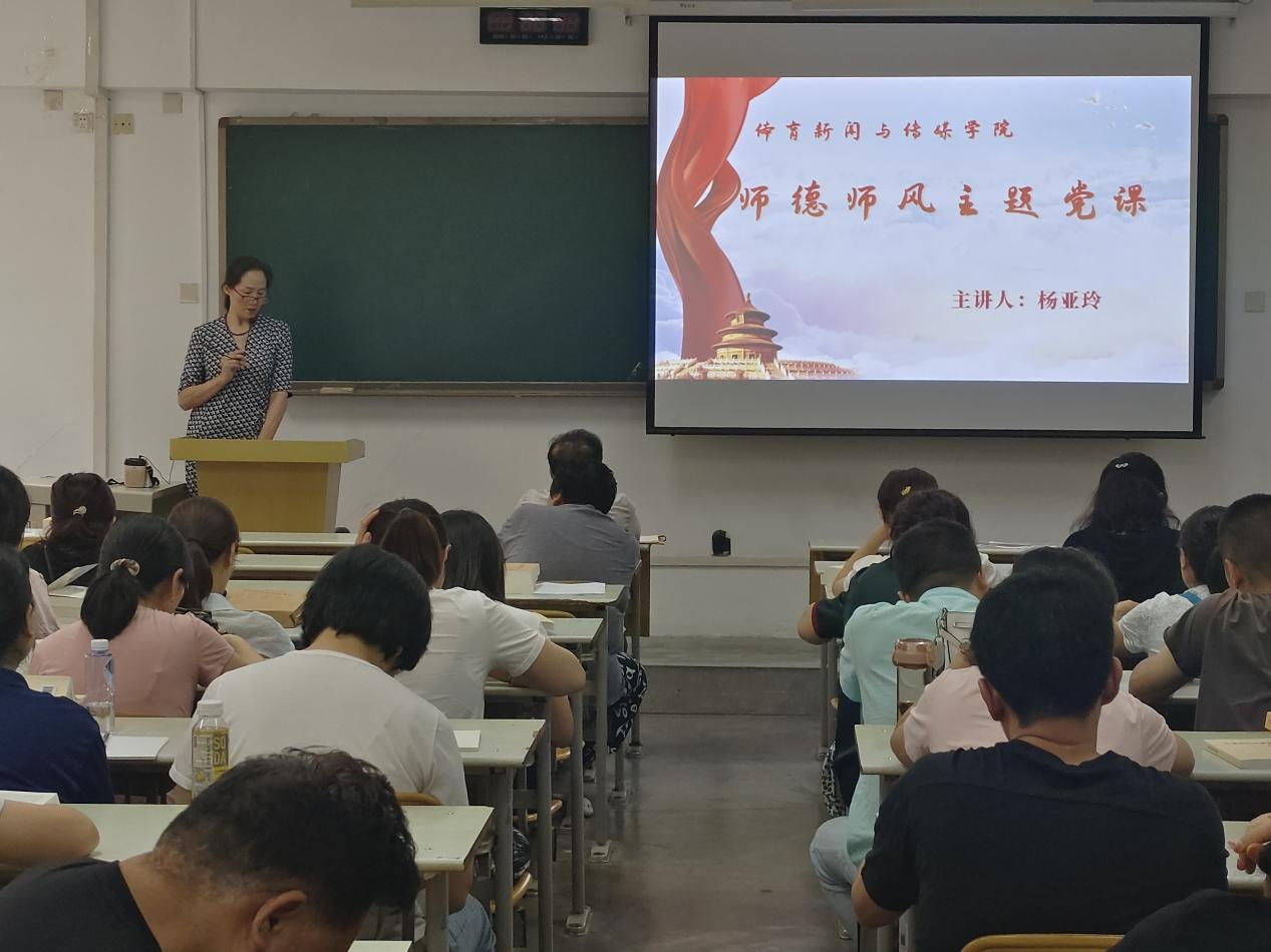 本网讯 7月6日,体育新闻与传媒学院召开师德师风教育大会,会议由学院党委书记杨亚玲主持,学院党政领导班子、党委委员和全体教职工与会。
