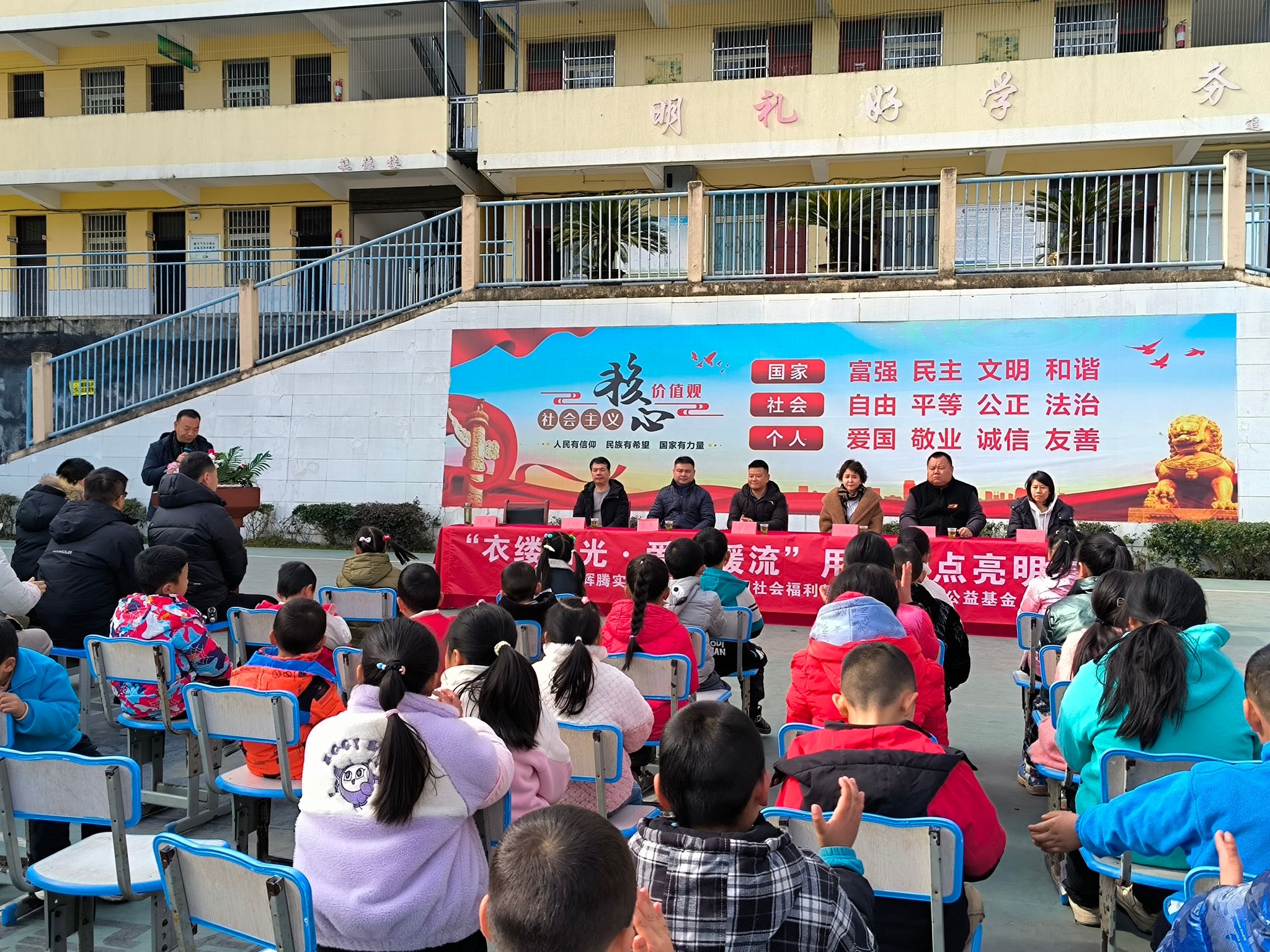 县河镇财梁九年制学校校长在致辞中对捐赠双方表达了诚挚的谢意。指出这批冬装校服不仅是物质上的支持,更是精神上的鼓舞,让孩子们感受到了社会的关爱和温暖,激励他们更加努力学习,回报社会。孩子们接过款式新颖、保暖舒适的冬装校服,脸上洋溢着幸福的笑容。此次捐赠活动不仅解决了孩子们的实际需求,更在他们心中播下了爱的种子。