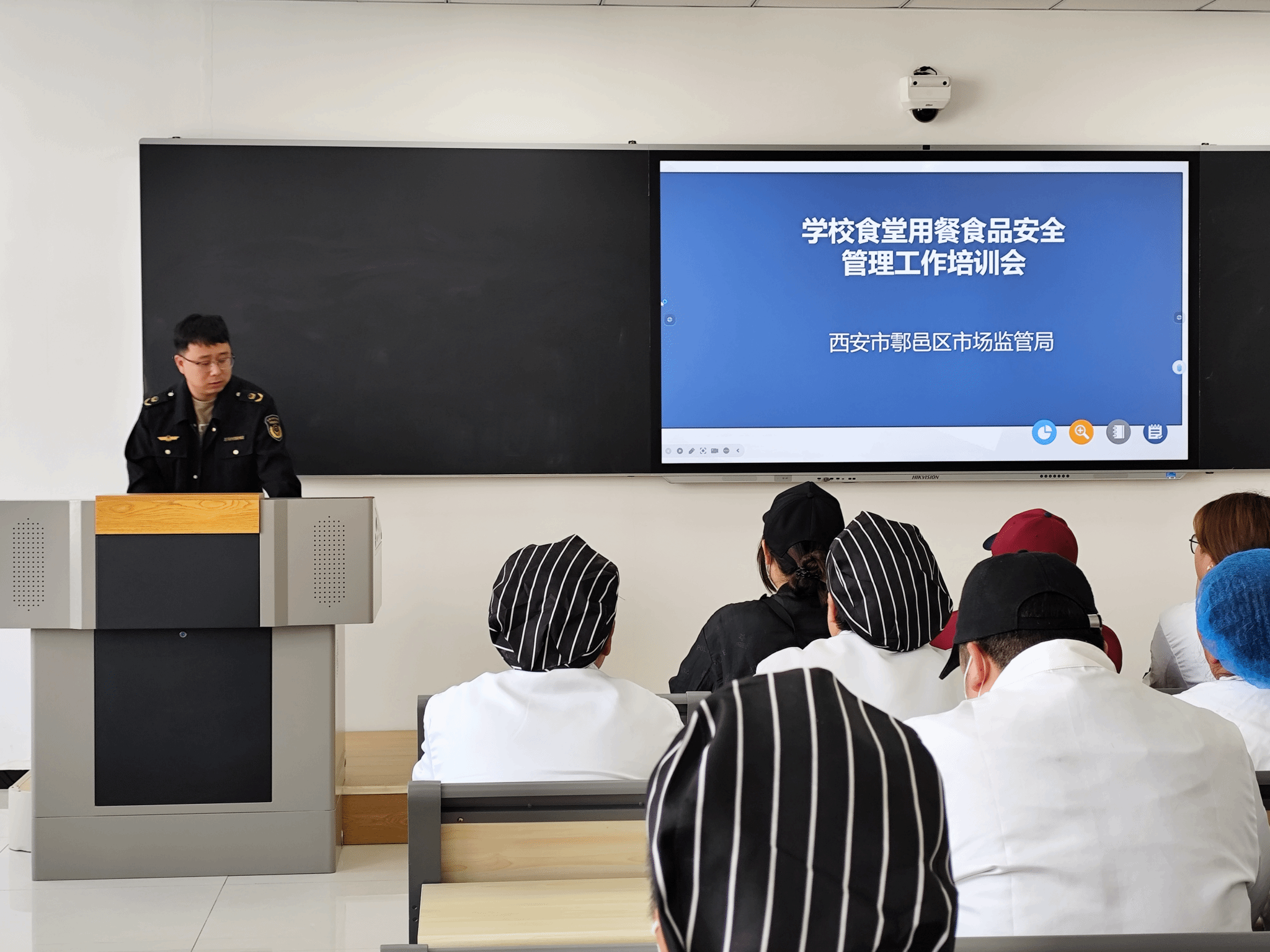 为加强食品安全监控力度,提高从业人员整体素质,管委会联合鄠邑区市场监管局举办食品安全专题培训,专家系统讲解证照合规、人员健康、原料采购、加工操作全流程管控规范,结合典型案例剖析风险点,明确法律责任。培训强调理论与实践结合,提升从业人员责任意识与风险防范能力。