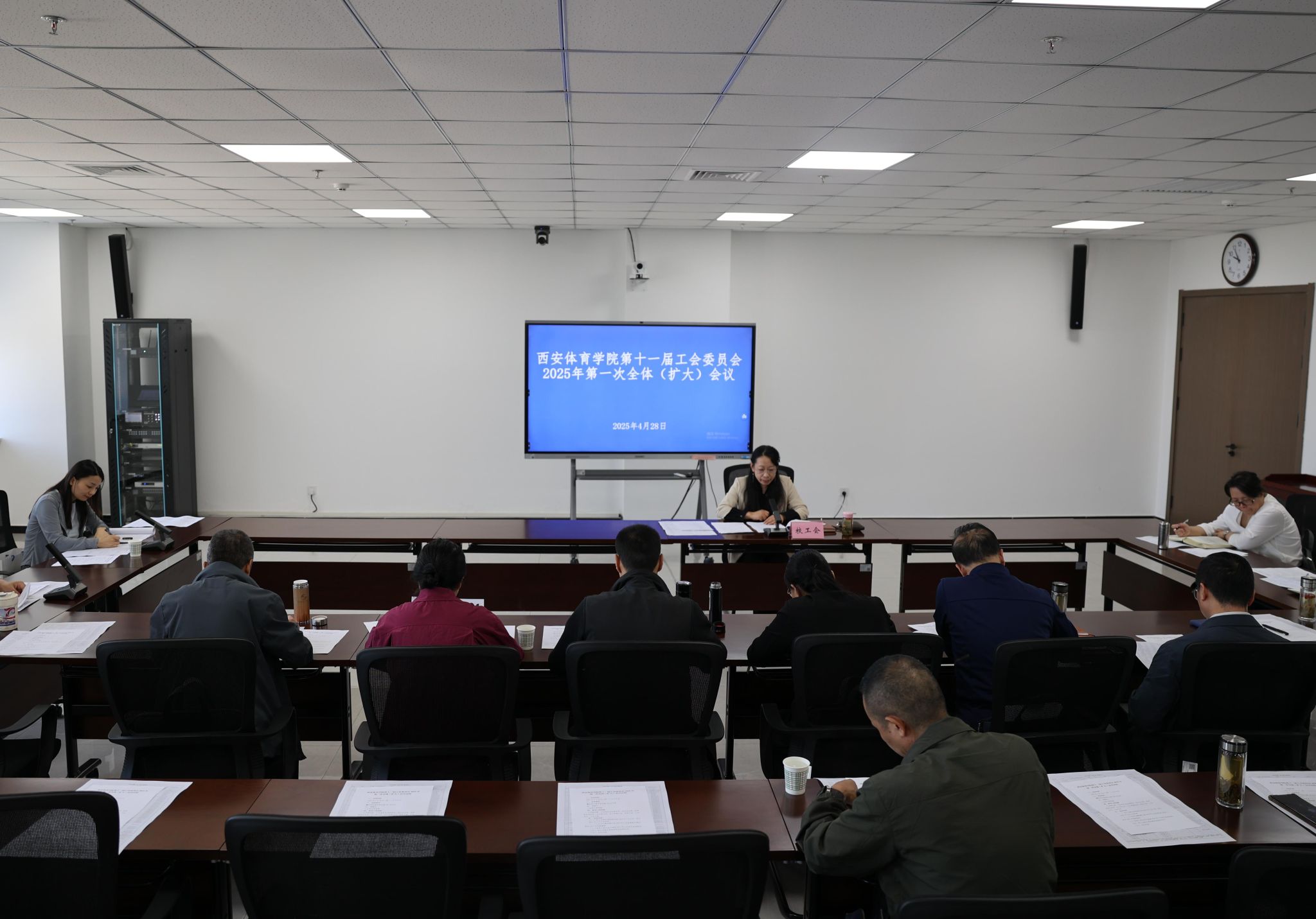 本网讯 4月28日上午,我校第十一届工会委员会2025第一次全体(扩大)会议在鄠邑校区教学综合楼502会议室召开。工会委员会全体委员、各分会主席、经审委员会委员、女工委主任、女工委副主任、经审干部、工会会计及校工会干部等参加会议。会议由校工会副主席张娟主持。