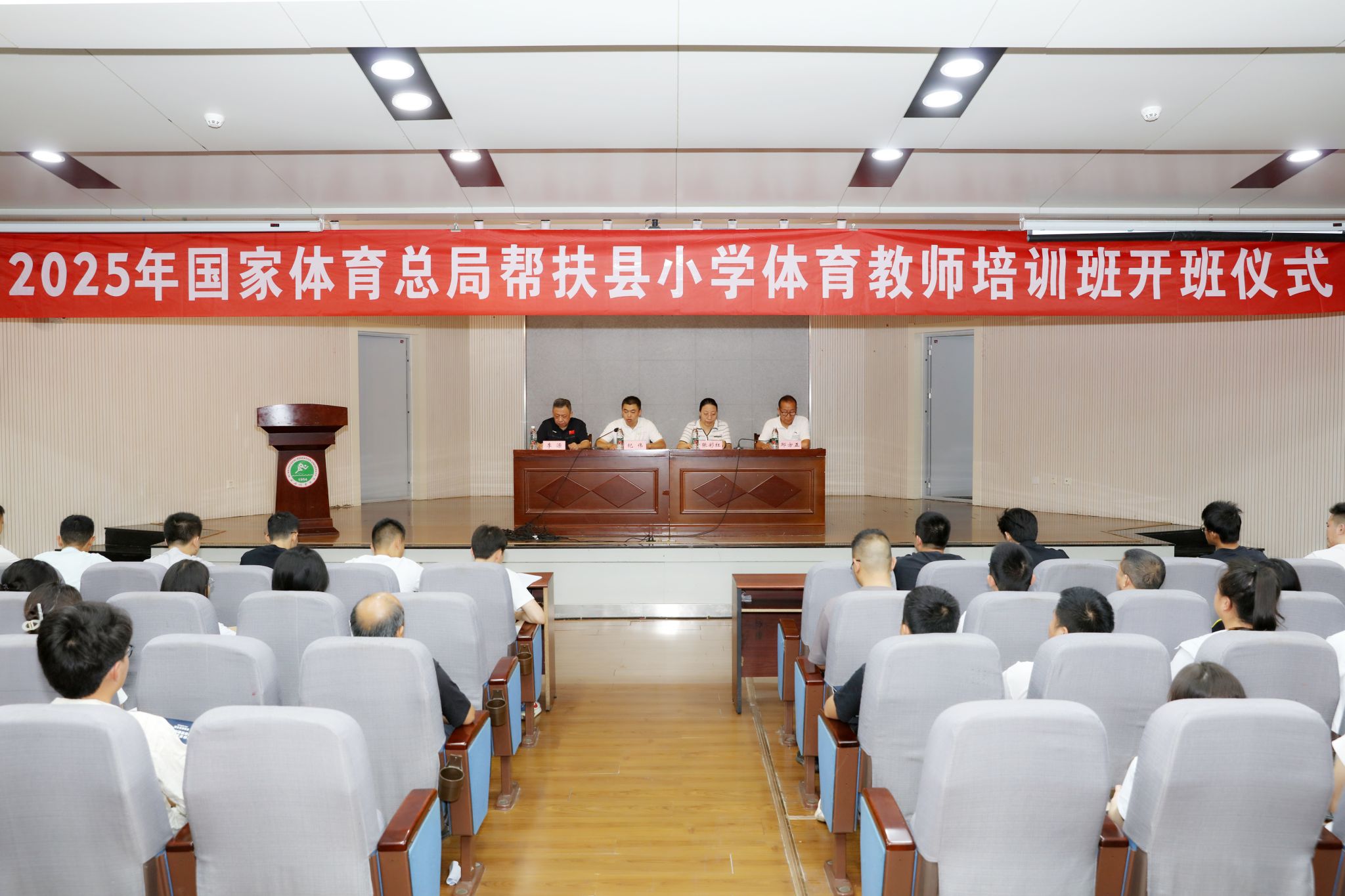 本网讯 7月7日上午,由国家体育总局定点帮扶工作领导小组办公室主办,今年会官方网站具体组织实施的“2025年帮扶县小学体育教师培训班”在我校含光校区正式启动。来自湖南、贵州的51名小学体育教育骨干参加了培训。
