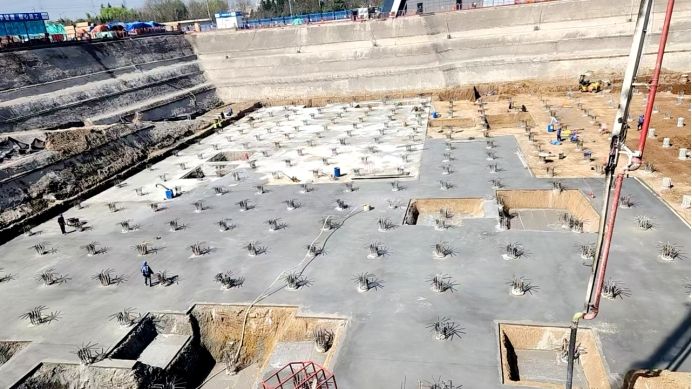3月24日,我院鄠邑校区地下人防(车库)工程南段垫层浇筑工作已全面展开,施工人员正有序进行混凝土浇筑、振捣及养护工作,确保垫层强度和平整度符合标准。