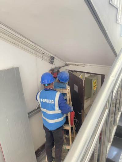 7、排烟井涂料、及风筏未安装施工,疏散指示灯脱落未恢复