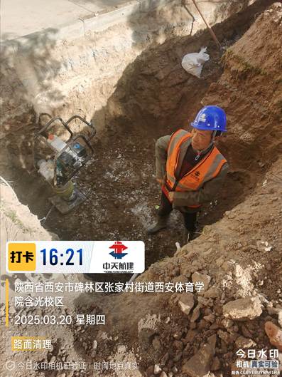 八号楼强电管道管沟开挖完成 2号综合楼北电井三七灰土夯实