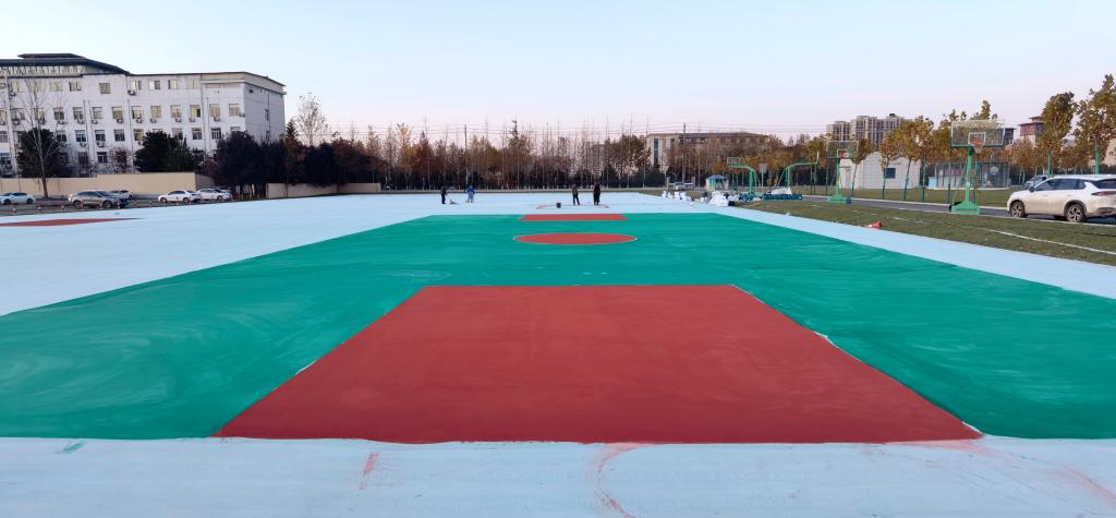 近日,我校鄠邑校区室外篮球场已完成部分地面材料的施工,整体工程进度有序推进。据悉,室外篮球场严格按照专业教学需要施工,共分为四个标准的篮球场与两个半场。