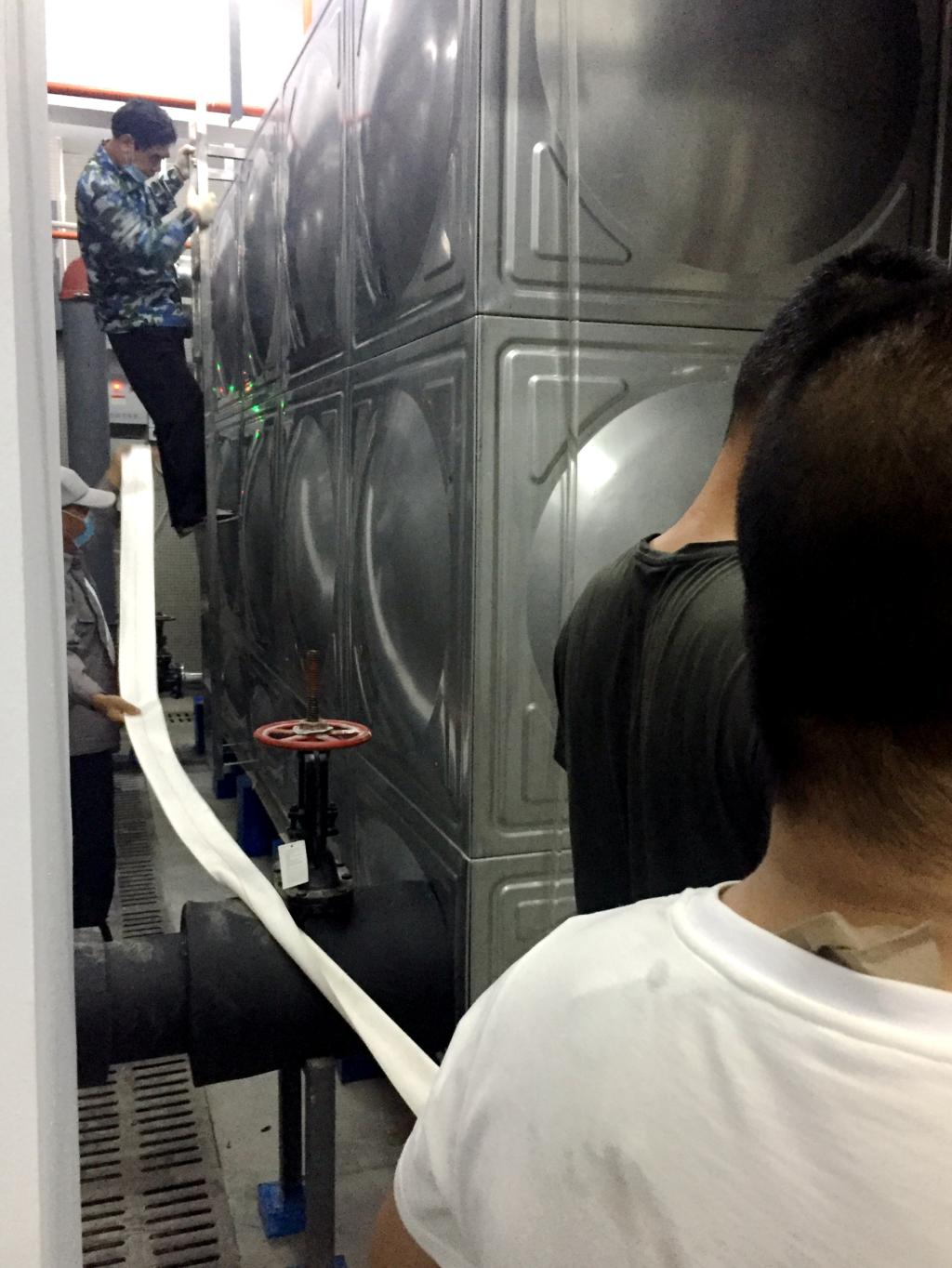 工作人员检查供水设备