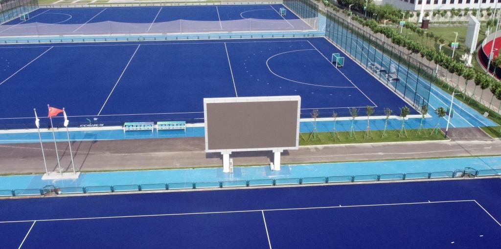 近日,天气炎热,我校鄠邑校区电力工作人员在酷暑下坚持作战,已按照十四运会正式比赛要求将曲棍球场比赛大屏幕安装完成。