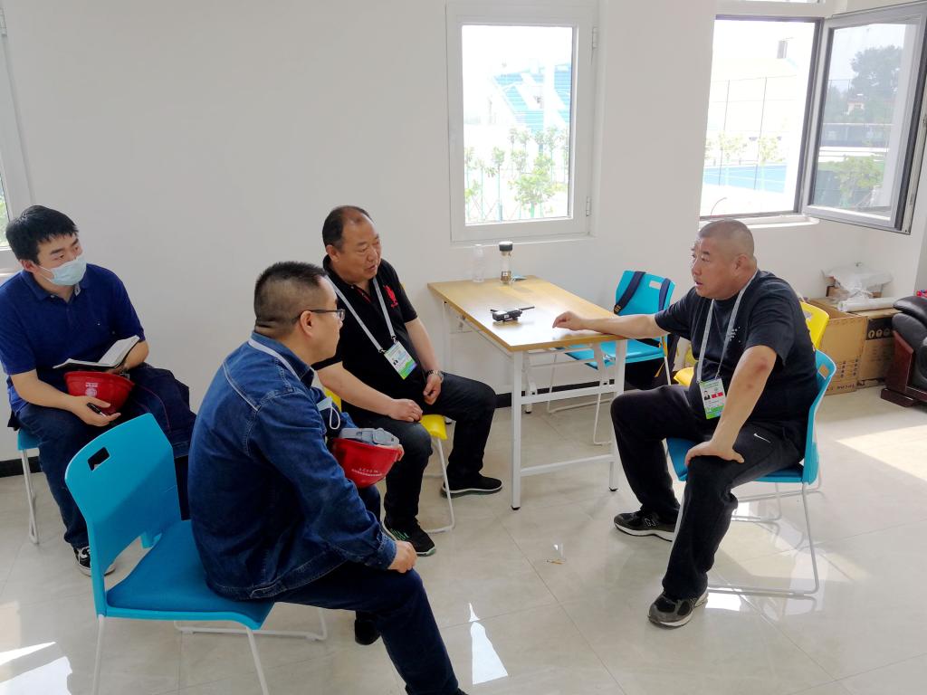 基建处处长甘泽军(右)会同相关工作负责人召开工作落实会