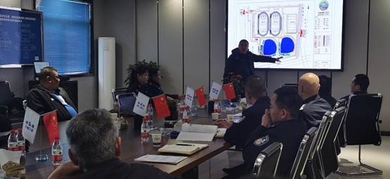 甘泽军向与会人员介绍场馆运行流线情况