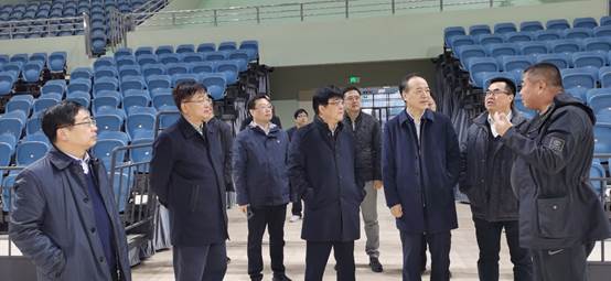 2月24日上午,省政府副秘书长、十四运会和残特奥会组委会执行副秘书长王山稳,在陕西省体育局党组成员、副局长李富生陪同下,来到我校鄠邑赛区“一馆四场”调研场馆建设及周边配套设施建设和环境整治提升工程。我校党委书记黄道峻、校长刘子实、副校长张卫国、基建处处长甘泽军,西安市鄠邑区区委书记范九利、区委副书记汪国栋等相关领导陪同。