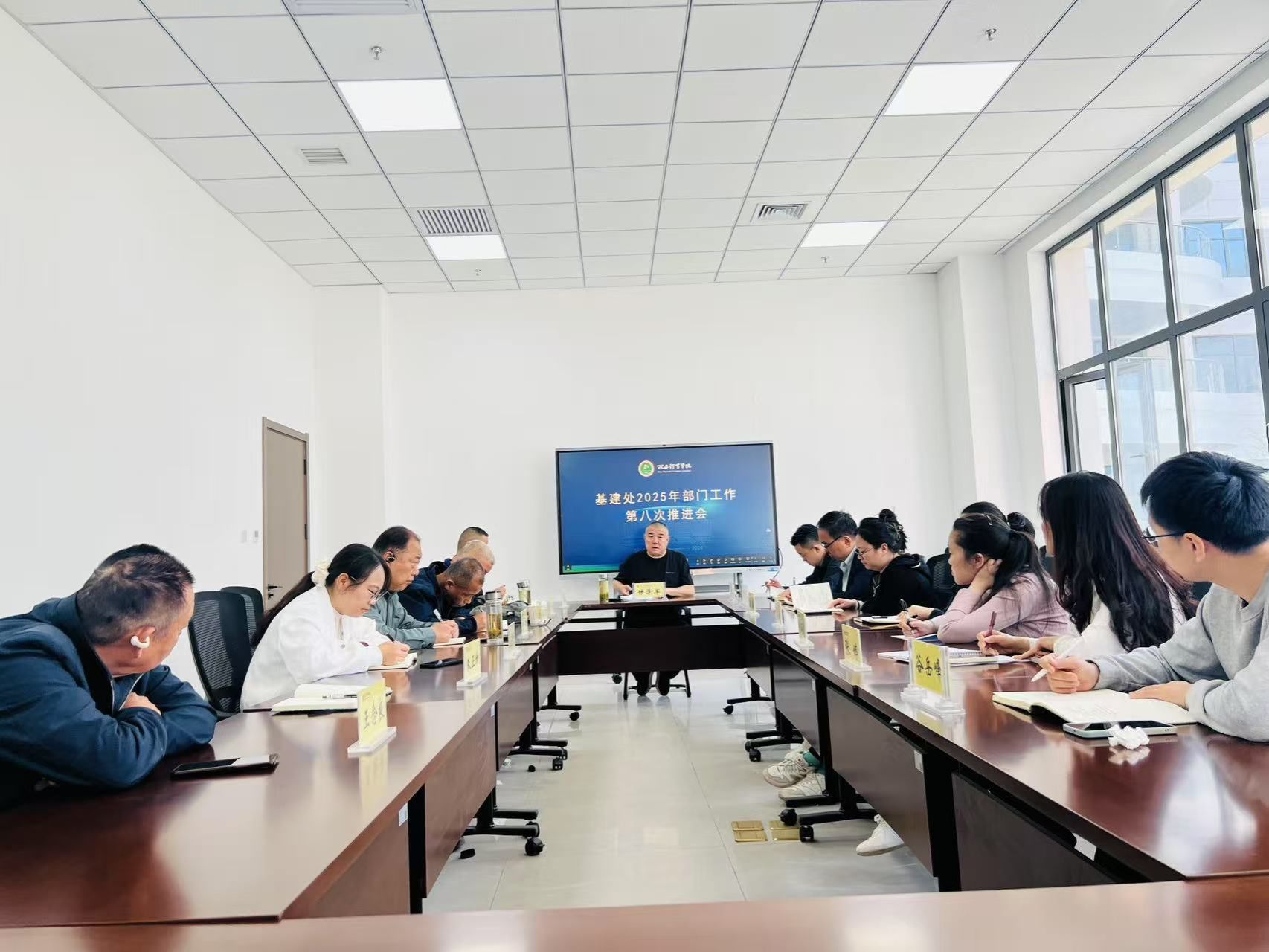 4月23日,基建处在鄠邑校区教学综合楼209会议室召开了2025年部门工作第八次推进会,处长甘泽军主持会议对近期工作进行总结,对下一步重点工作进行安排部署,会议要求各项目紧盯时间节点,确保工程质量和进度。