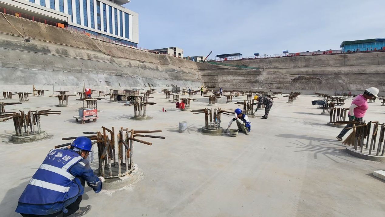 目前,中段基础垫层浇筑已完成95%,剩余工程将严格按《建筑地基基础工程施工质量验收标准》加速推进。
