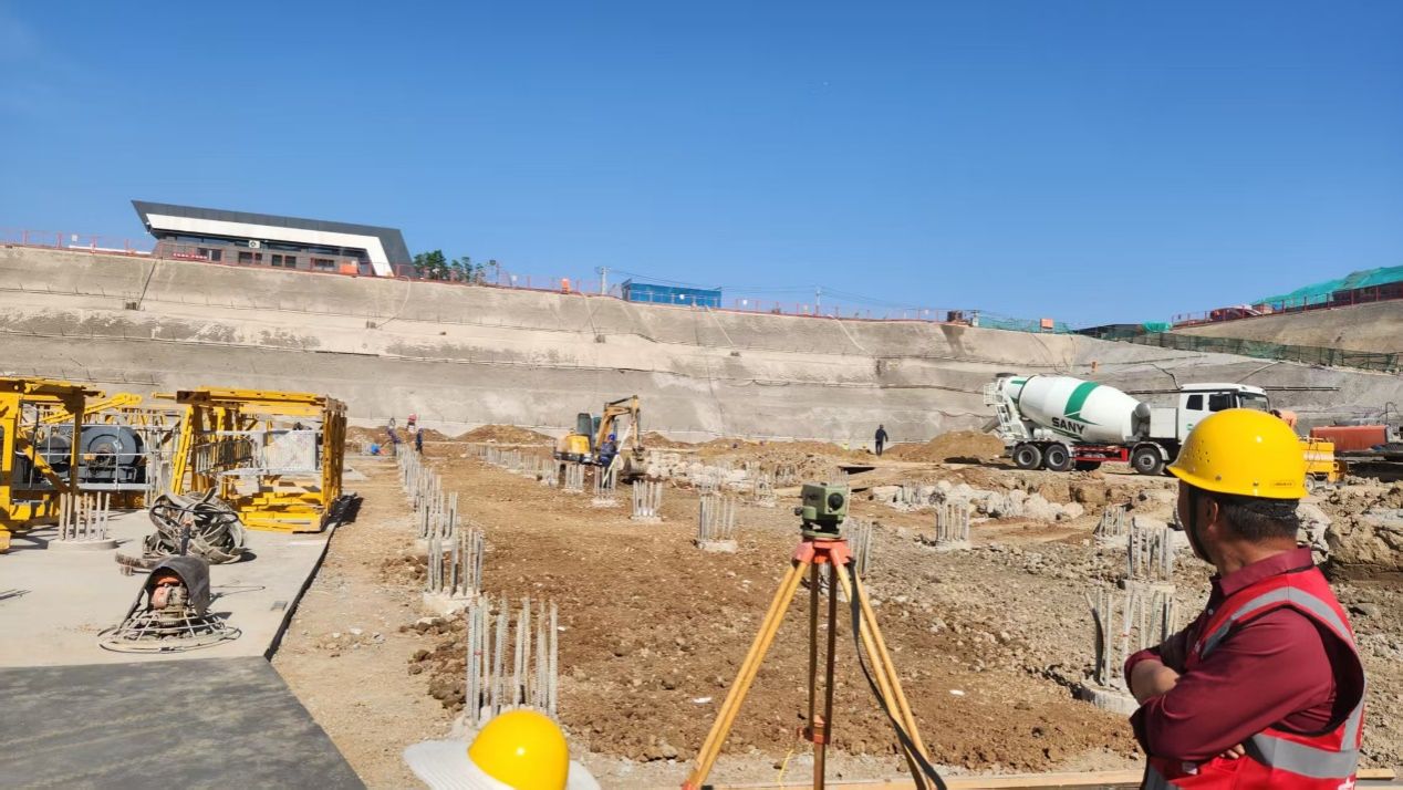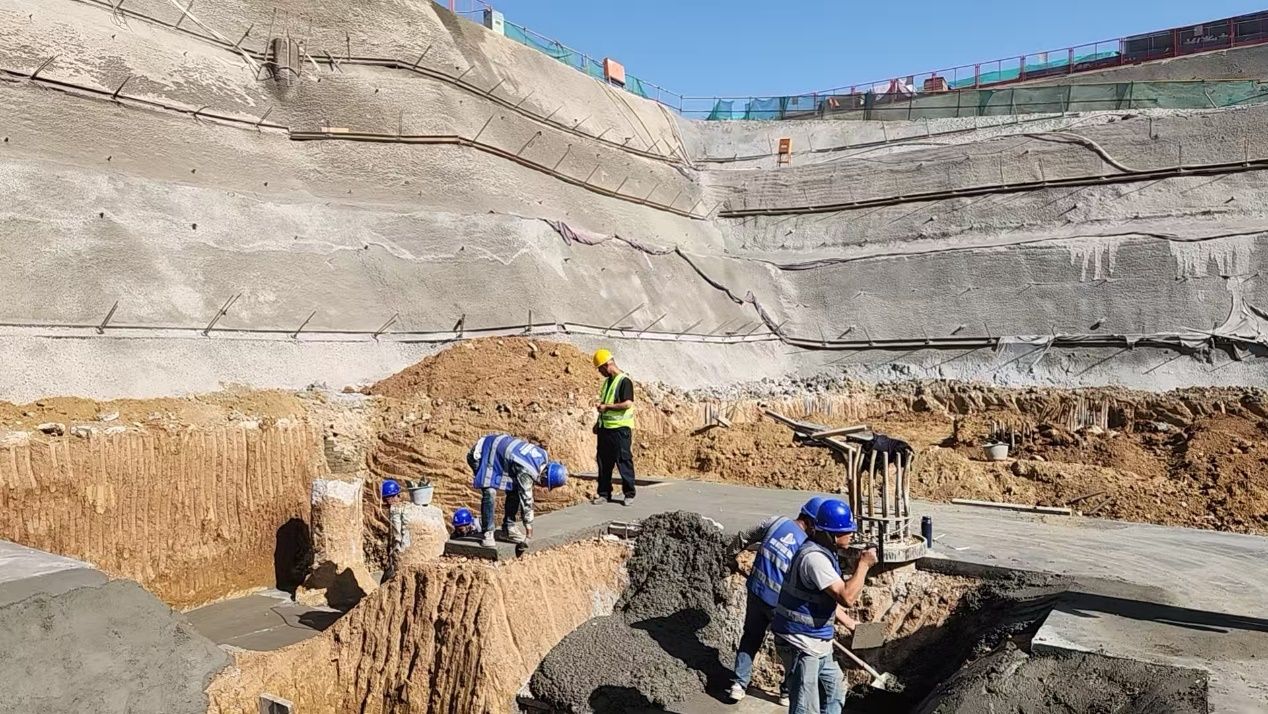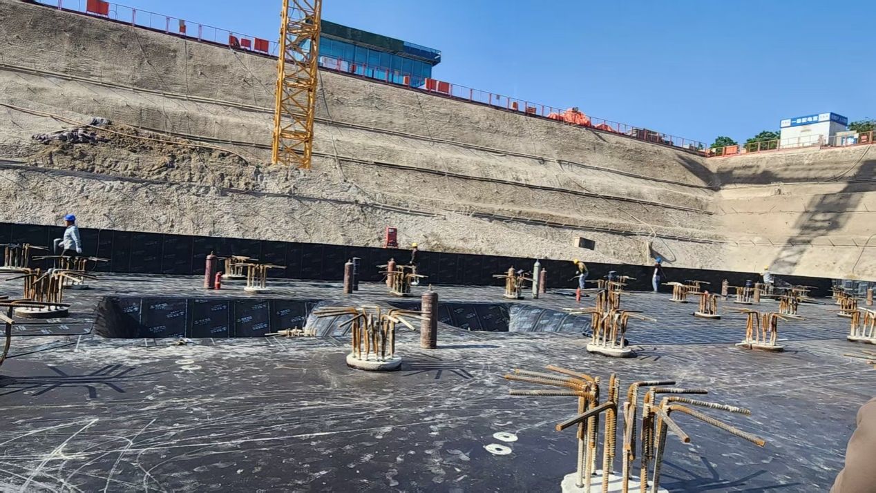 4月28日,鄠邑校区地下人防项目继前日启动高性能防水卷材敷设后,南段区域继续扩大冷底油喷涂、防水卷材铺装范围,同步推进防水层与结构接缝处理,并与当日完成5根灌注桩钢筋锚固焊接。