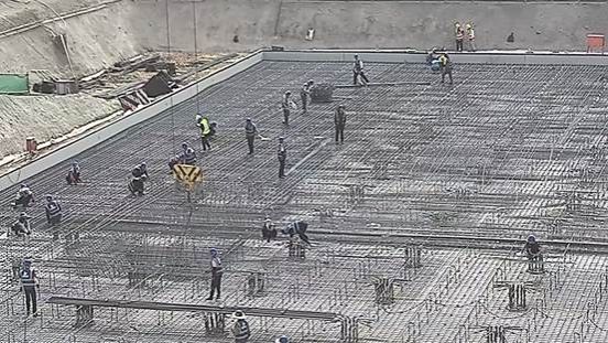 截至2025年5月7日,鄠邑校区地下人防工程南段施工进展平稳,该区域筏板底筋直螺纹套筒连接及绑扎作业已完成85%,较5月6日50%的进度实现大幅跃升;面筋直螺纹套筒连接同步推进,当前完成率达40%。施工团队通过优化人员配置与工序衔接,在保障南段核心作业面高效推进的同时,同步完善防水层接缝处理方案。