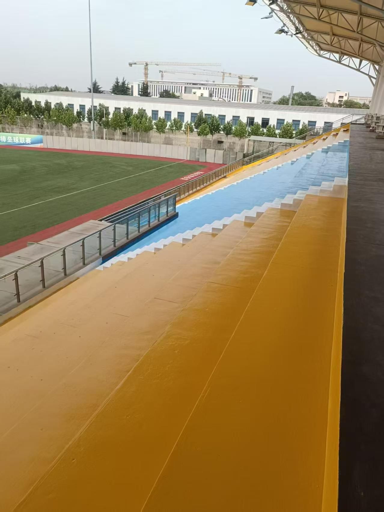 施工团队在作业过程中,严格遵循标准化流程。对旧漆面进行打磨清理,确保表面平整、无杂质;随后选用环保、耐候性强的专业涂料进行刷漆,全新的色彩搭配与场地风格相得益彰,营造整洁活力的视觉氛围。