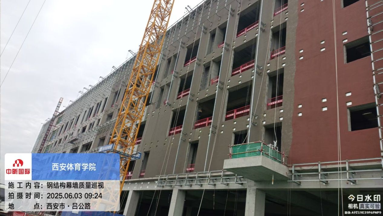 施工现场安全防护措施到位,施工秩序井然有序。南部一、二层区域正加快钢筋铺设作业,墙基开挖、砌筑、修补等同步衔接推进。北部钢结构顶板幕墙铺设、外立面钢结构幕墙安装稳步进行。