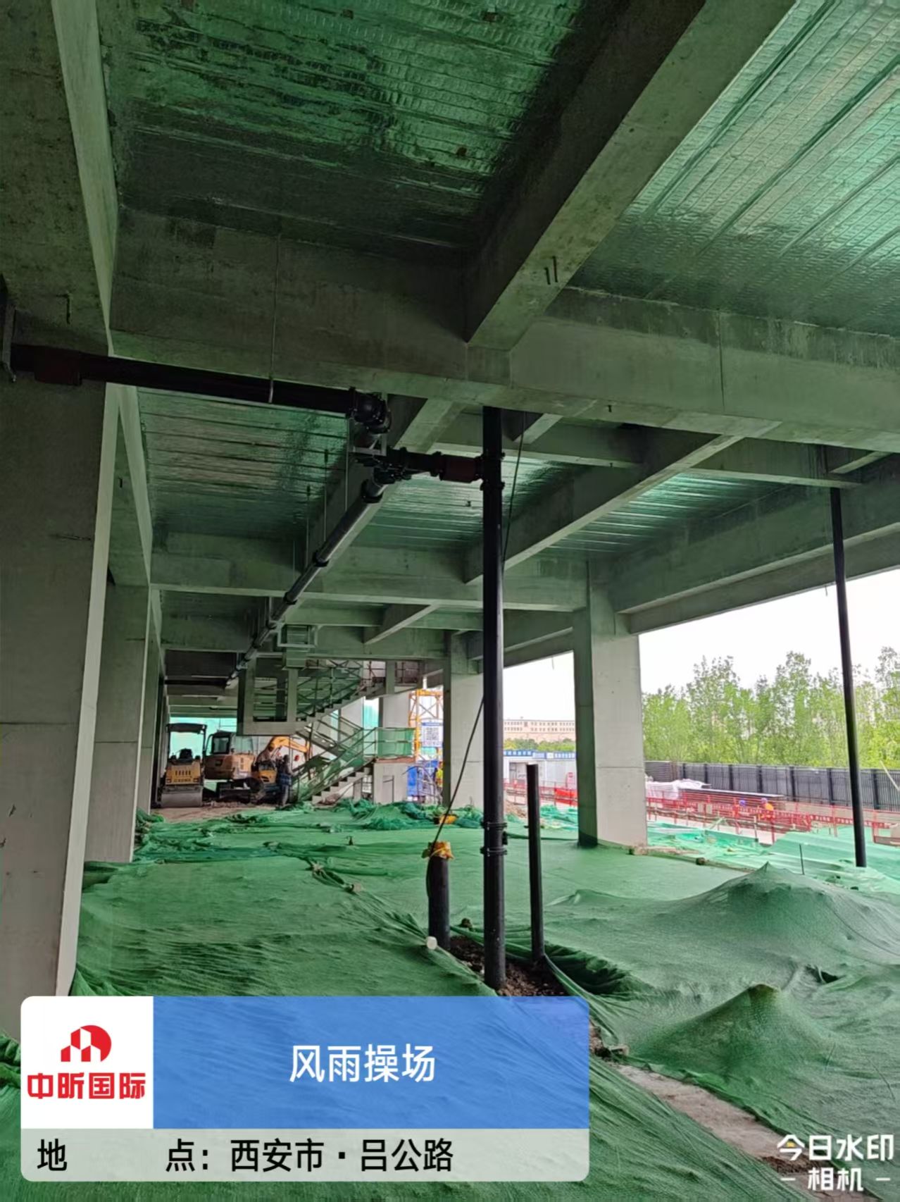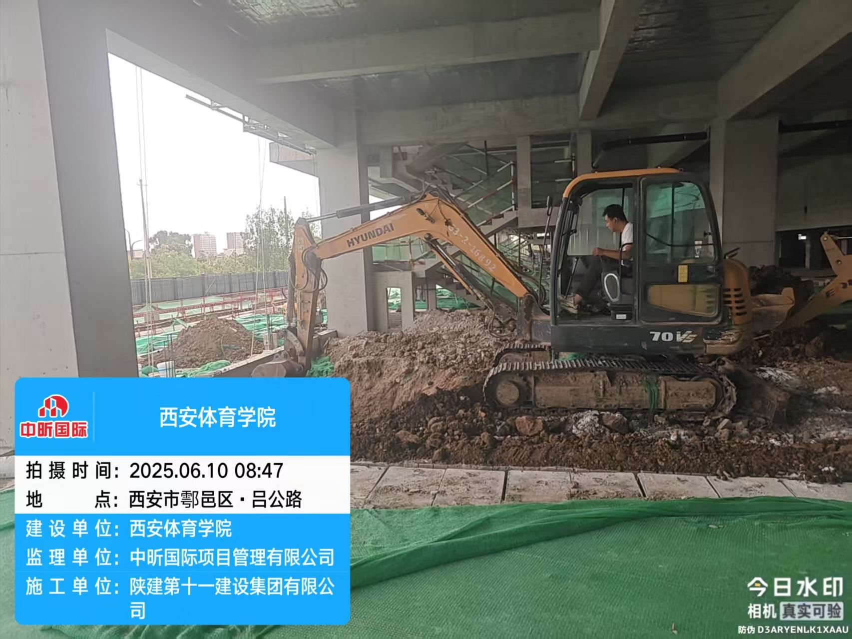 截止6月10日,鄠邑校区风雨操场施工现场秩序井然,建设、监理与施工单位紧密协作、高效衔接,场地内部多作业面施工同步推进。