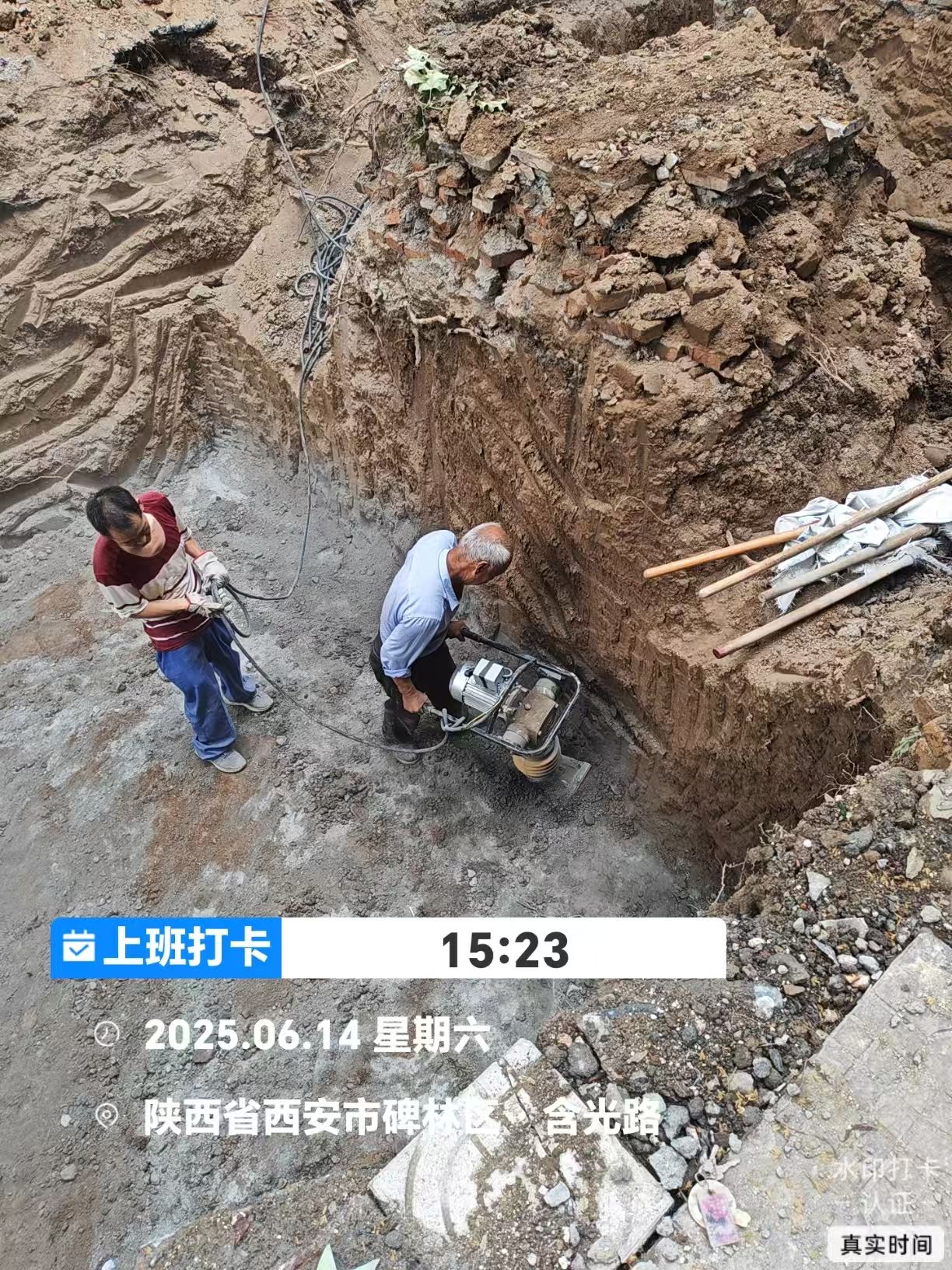 施工现场,作业人员配合机械,对基坑各施工参数进行全过程测量与数据监控,挖掘机精准清除基础下方杂填土、素填土,严格落实“全部挖除杂填土和素填土”技术要求,确保地基承载稳定性。